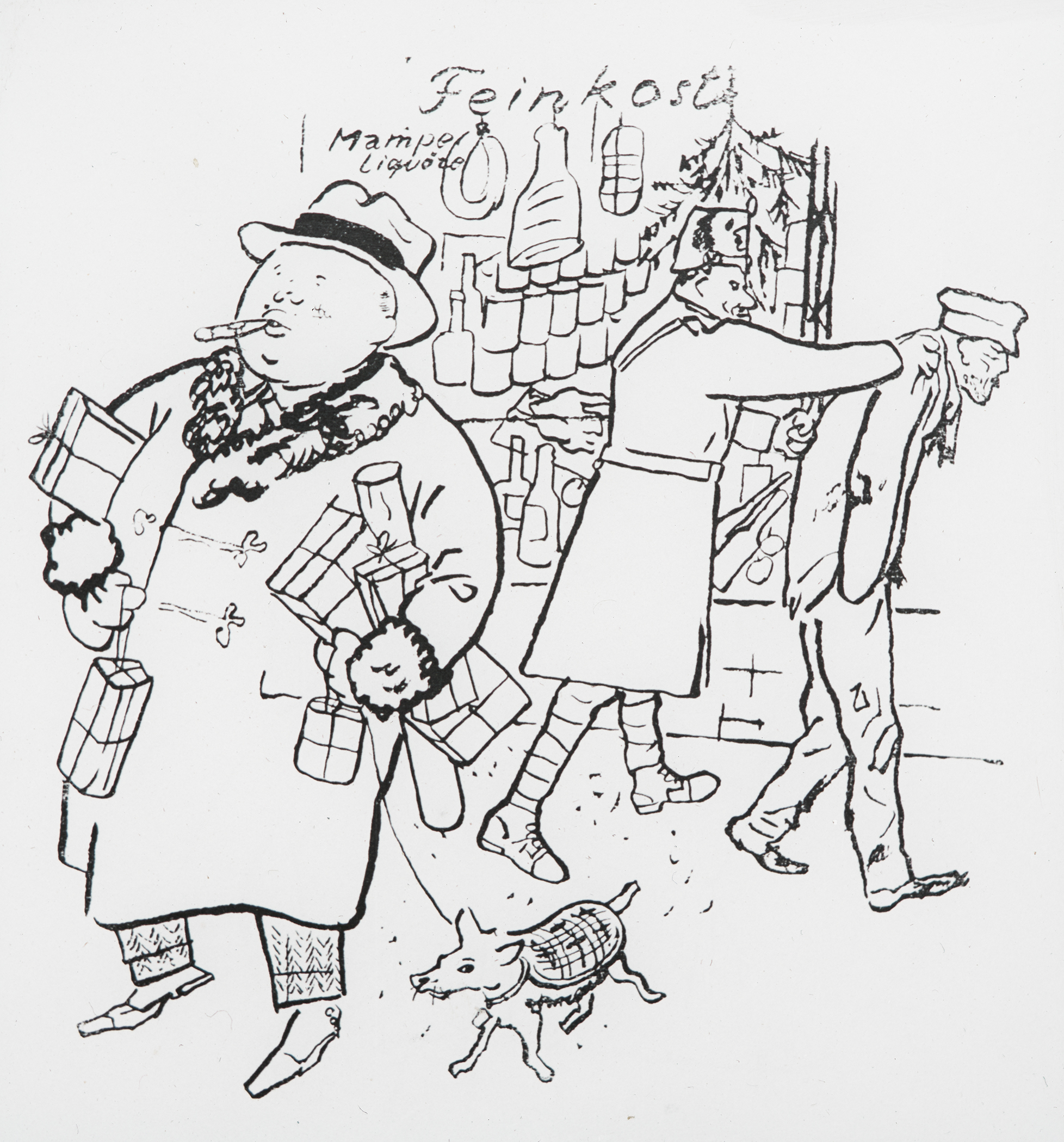 Eine Karikatur von George Gross mit der Aufschrift "Feinkost".