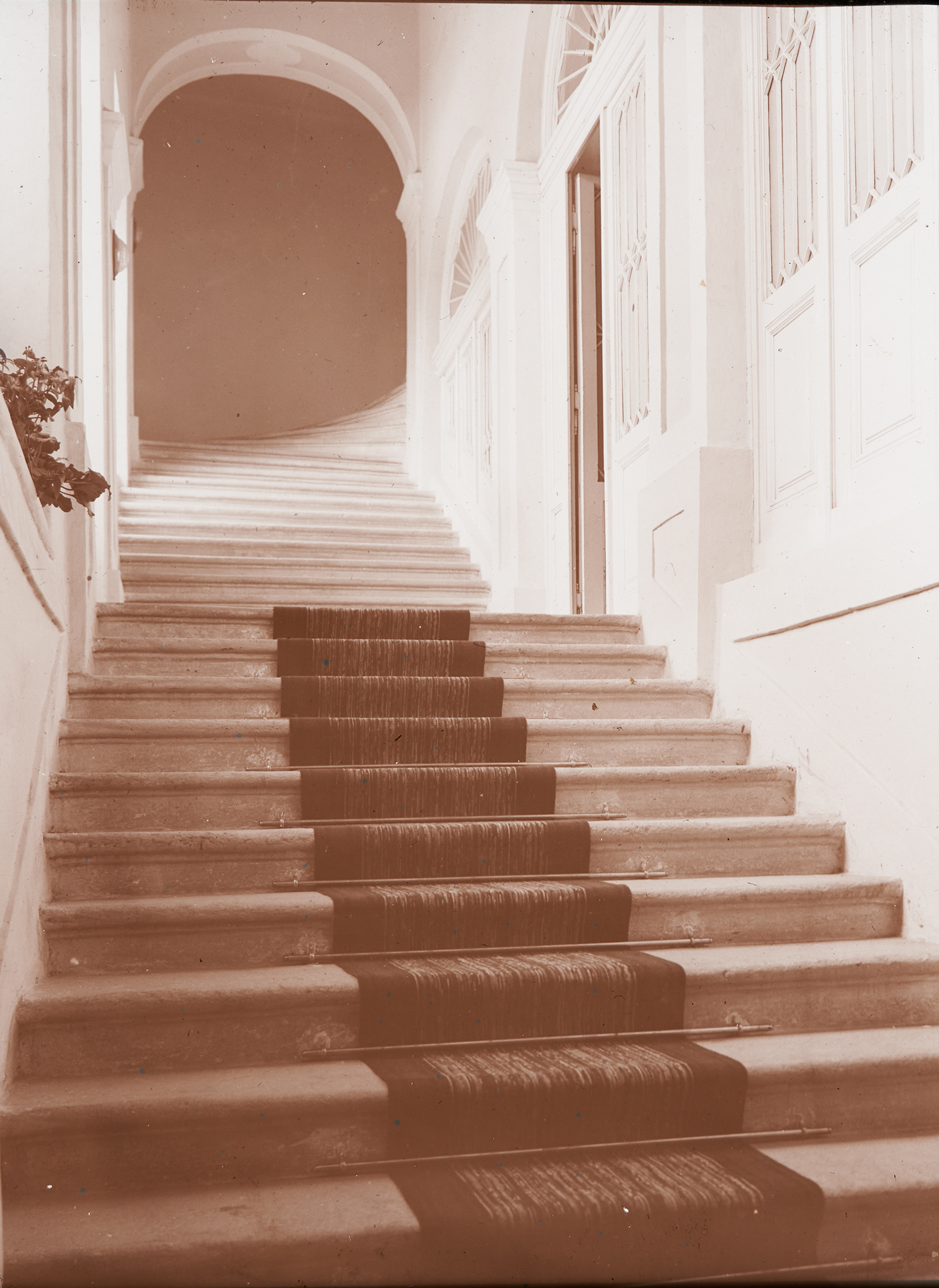 Aufschrift des Dias: "Photo Mansky, VI., Linke Wienzeile 58 Stiegenhaus"