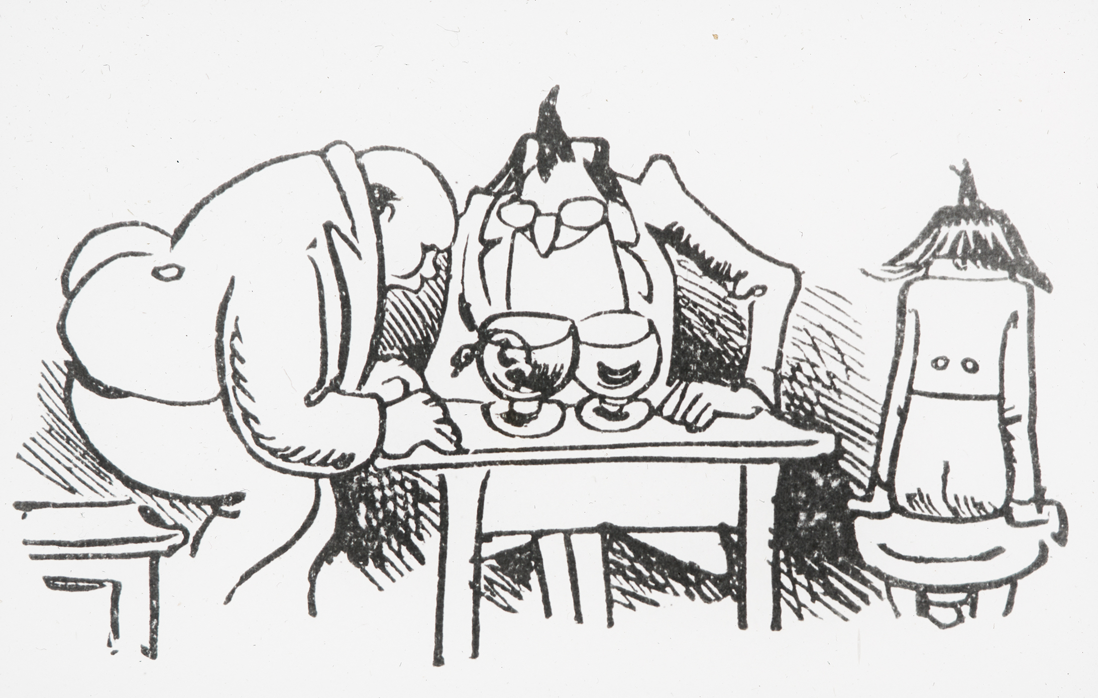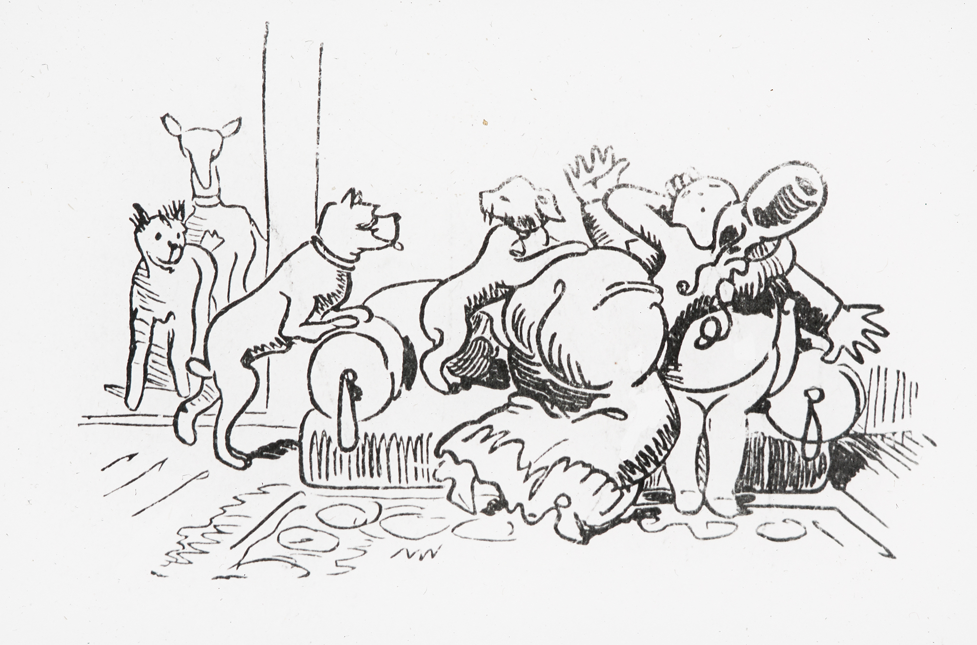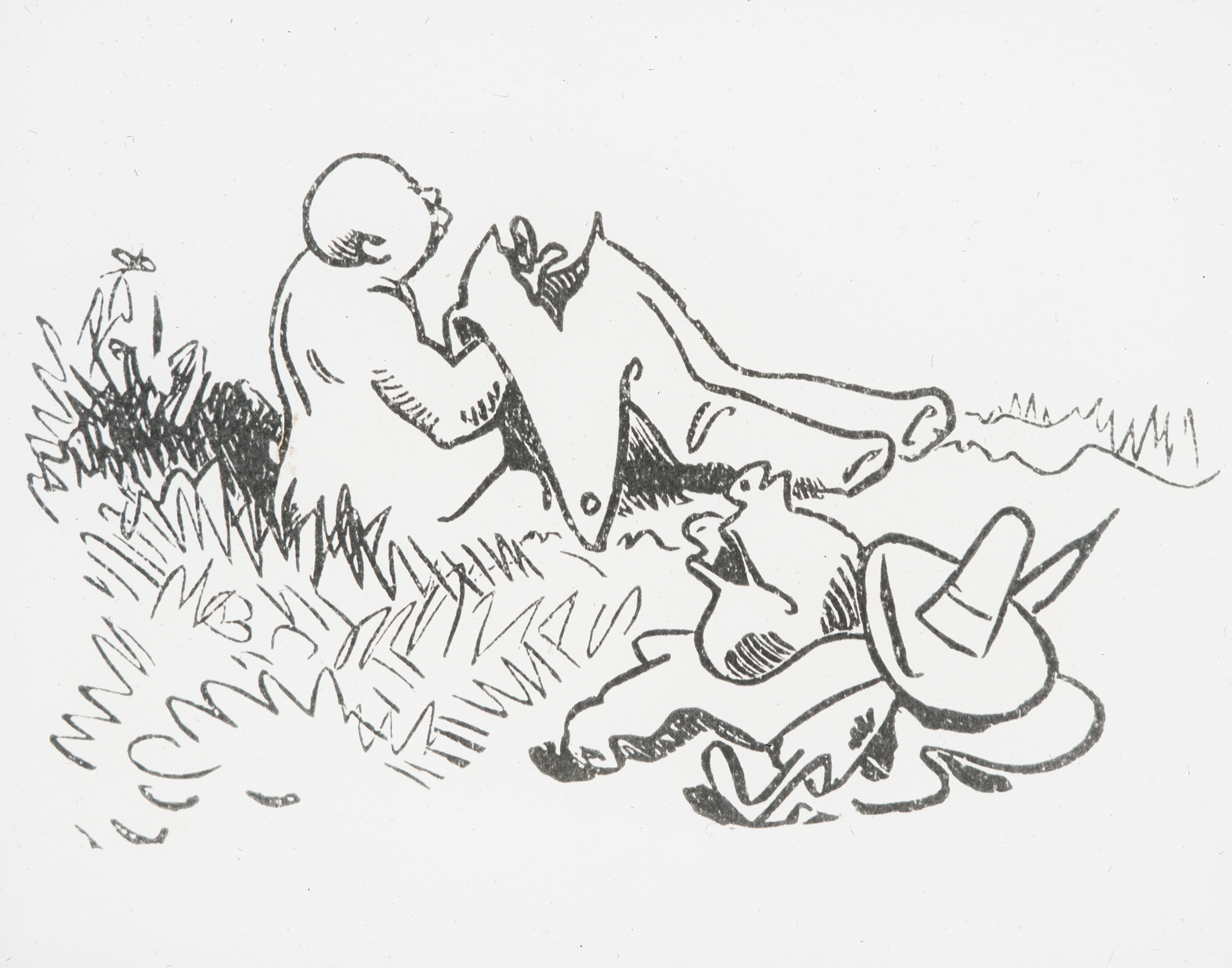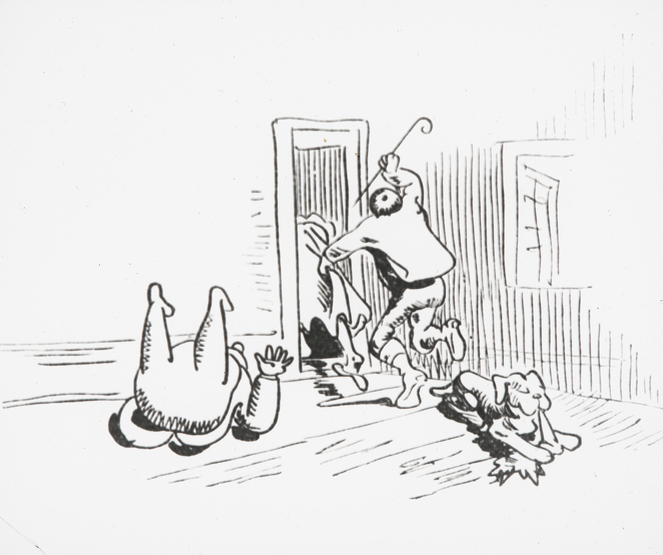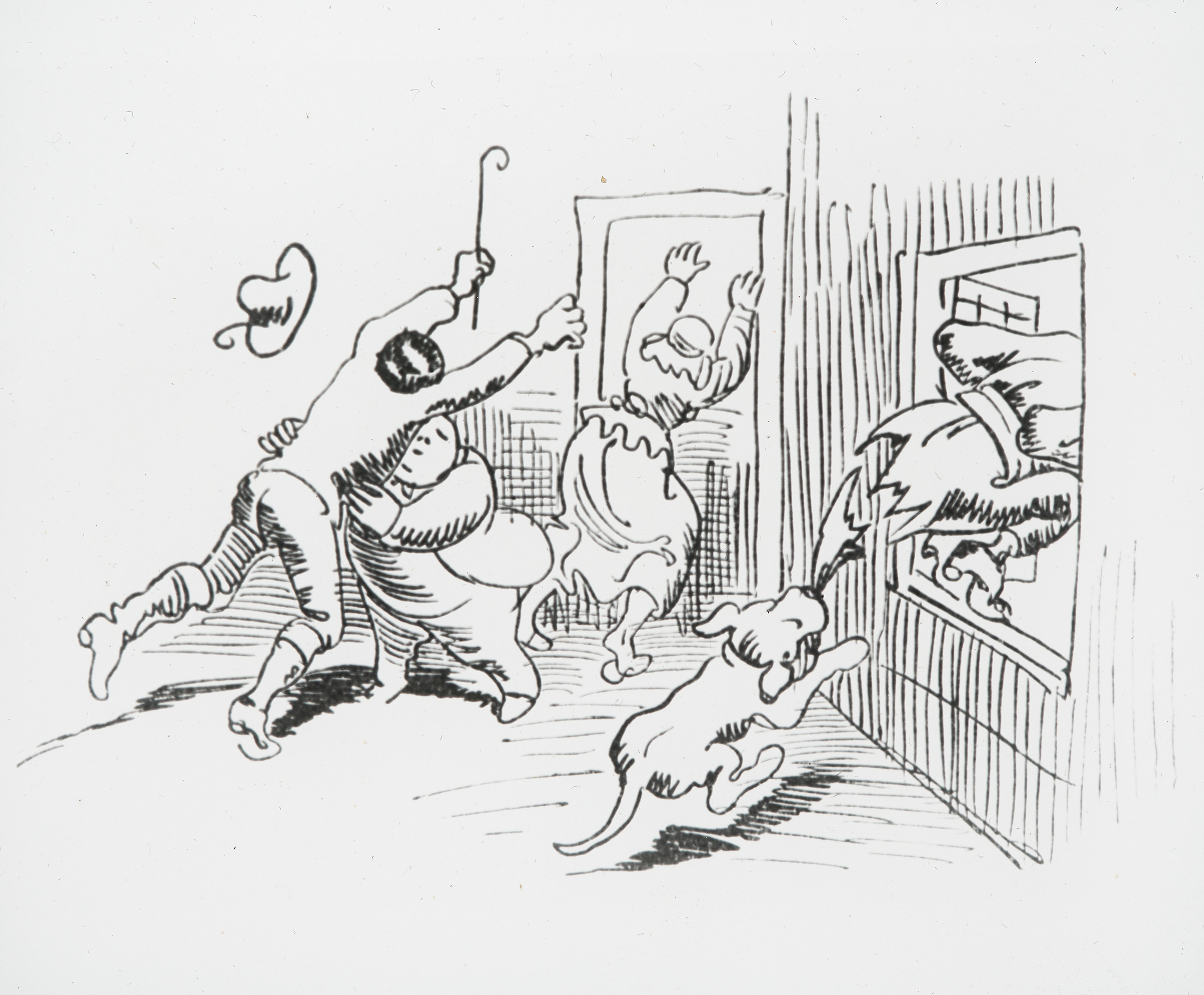 "»Komm«, – ruft Mücke – »Knopp, komm hier, Du logierst die Nacht bei mir!«"