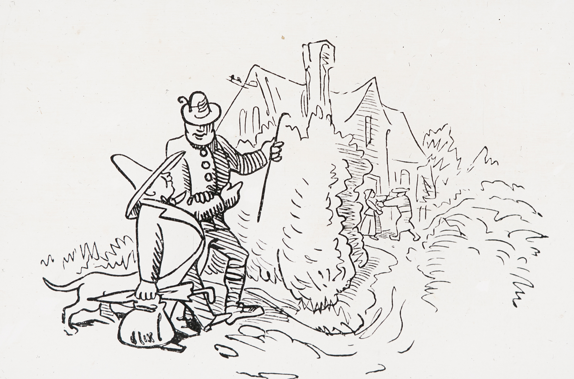 "Schnell verläßt er diesen Ort Und begibt sich weiter fort."