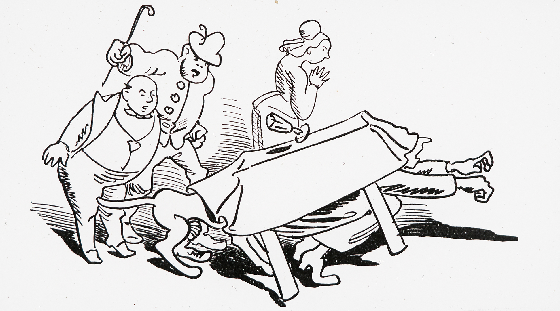 Aus dem Garten tönt Gelächter, Piepo ist's und seine Töchter.
