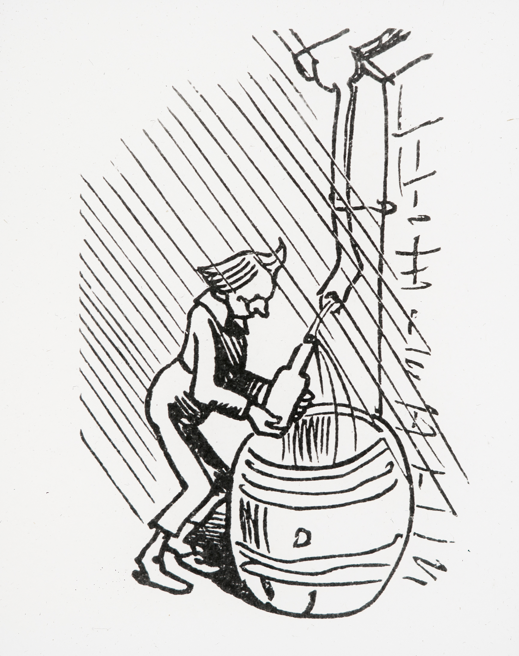 Die dadurch entstandne Leere Füllt er an der Regenröhre. –"