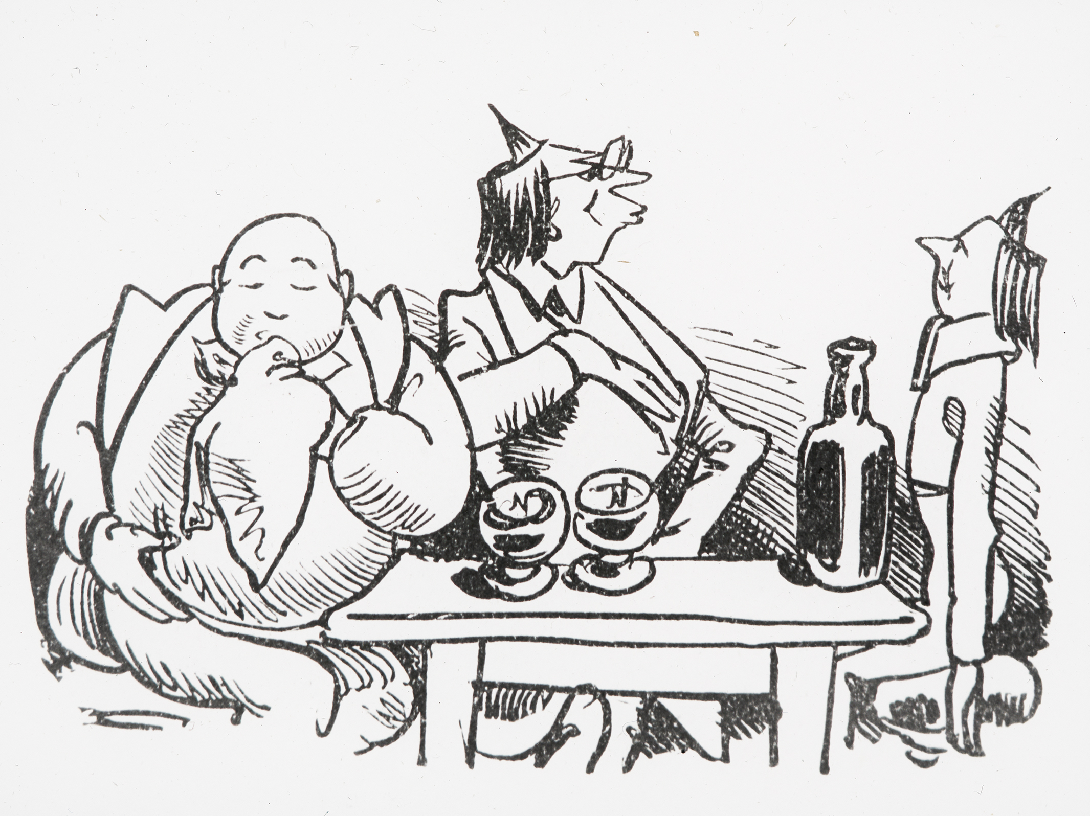 "Nun erfreut man sich selbdritt, Denn Kathinka trinket mit! –"