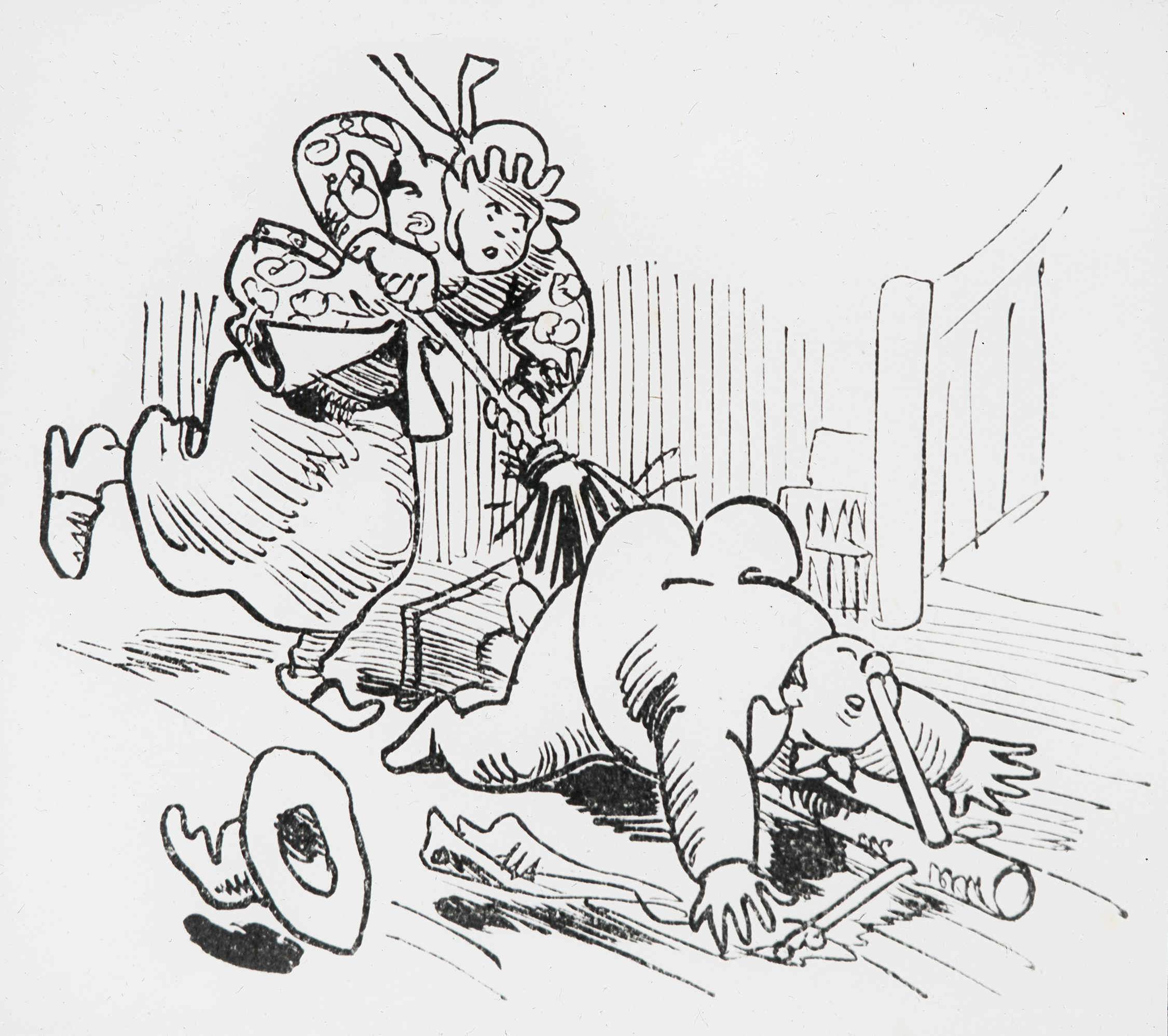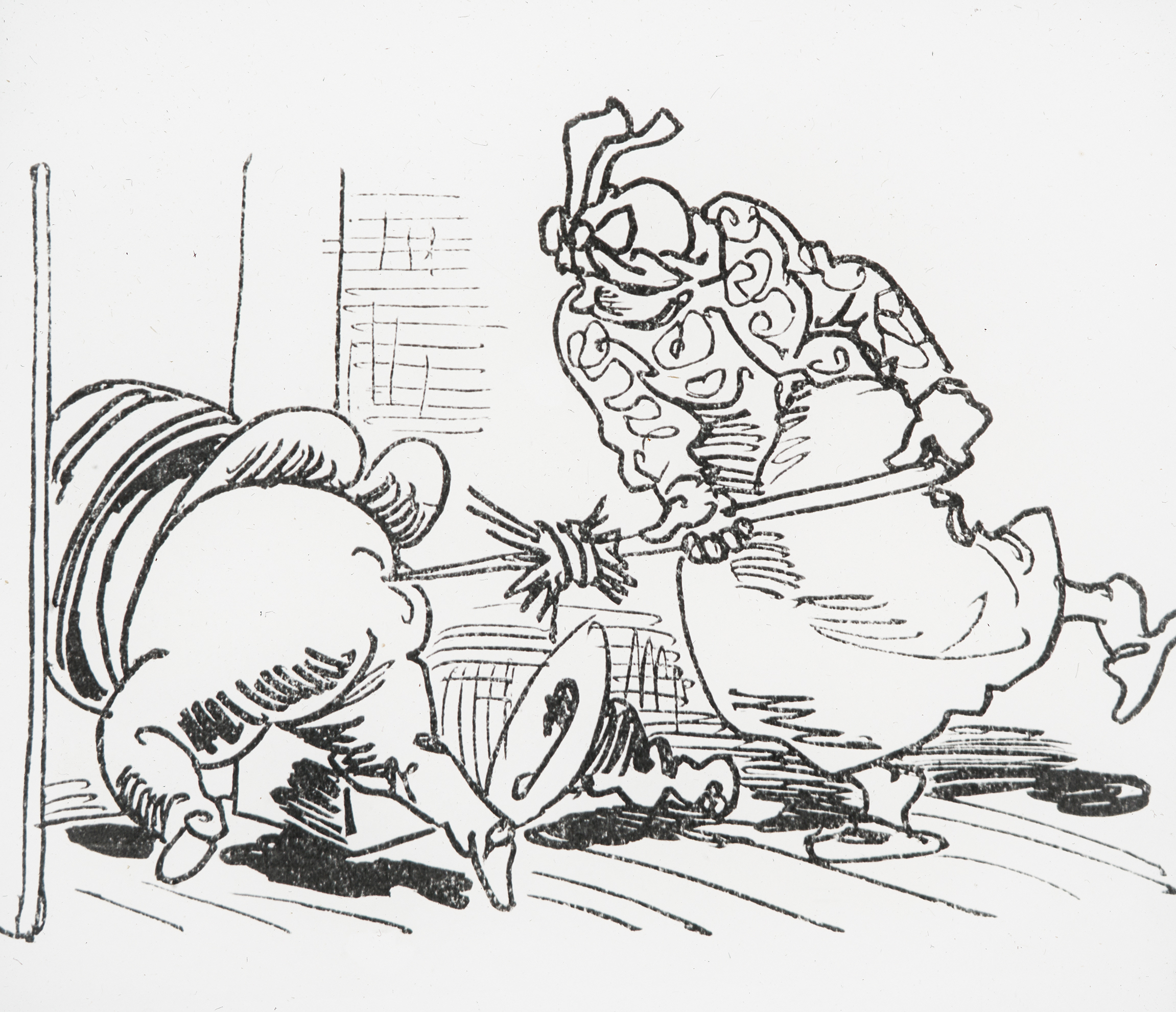 "Knopp's Vermittlung will nicht glücken. Wums! da liegt er auf dem Rücken."