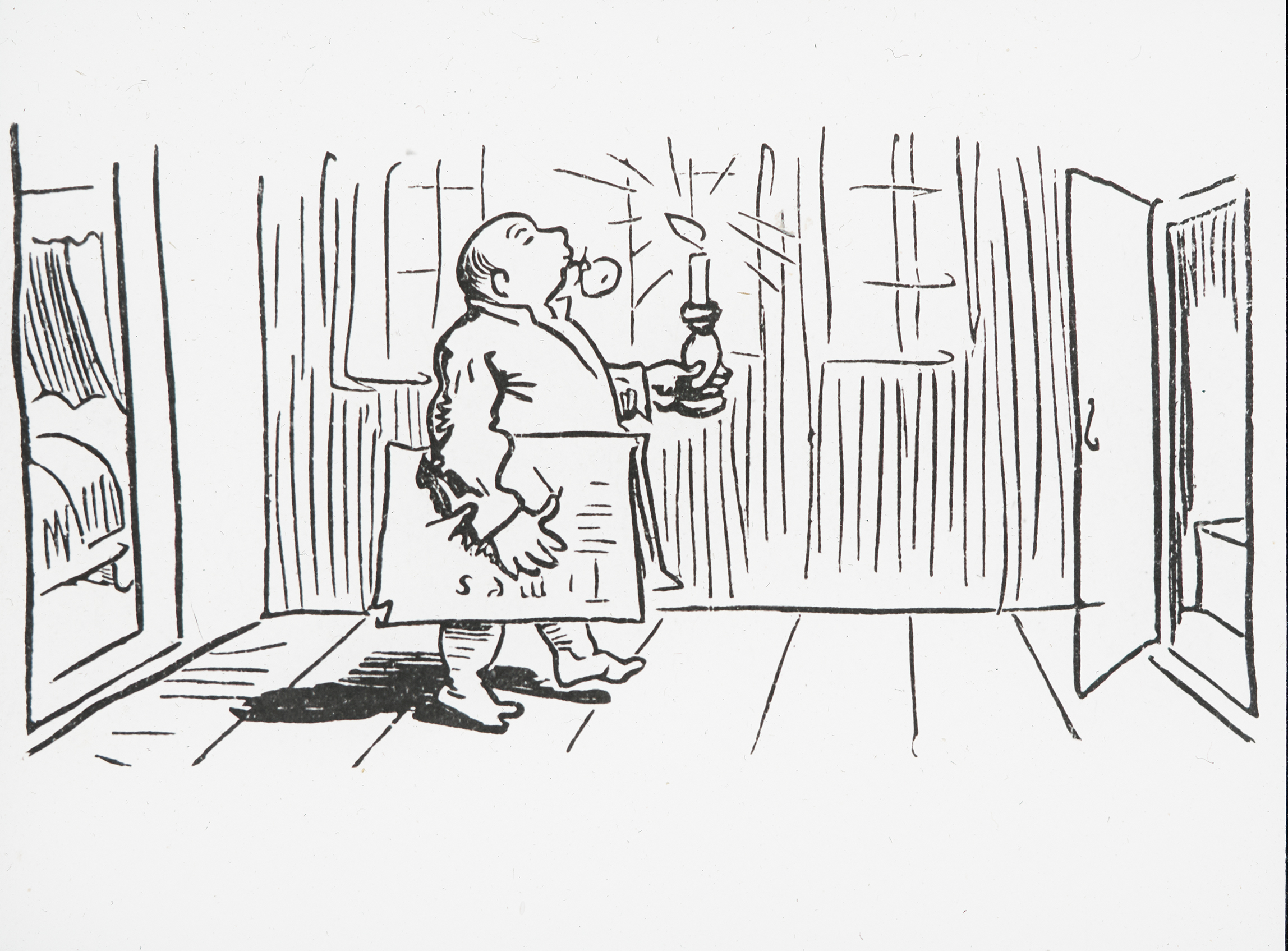 Und bei seiner Kerze Strahl Hingewandelt durch den Saal.