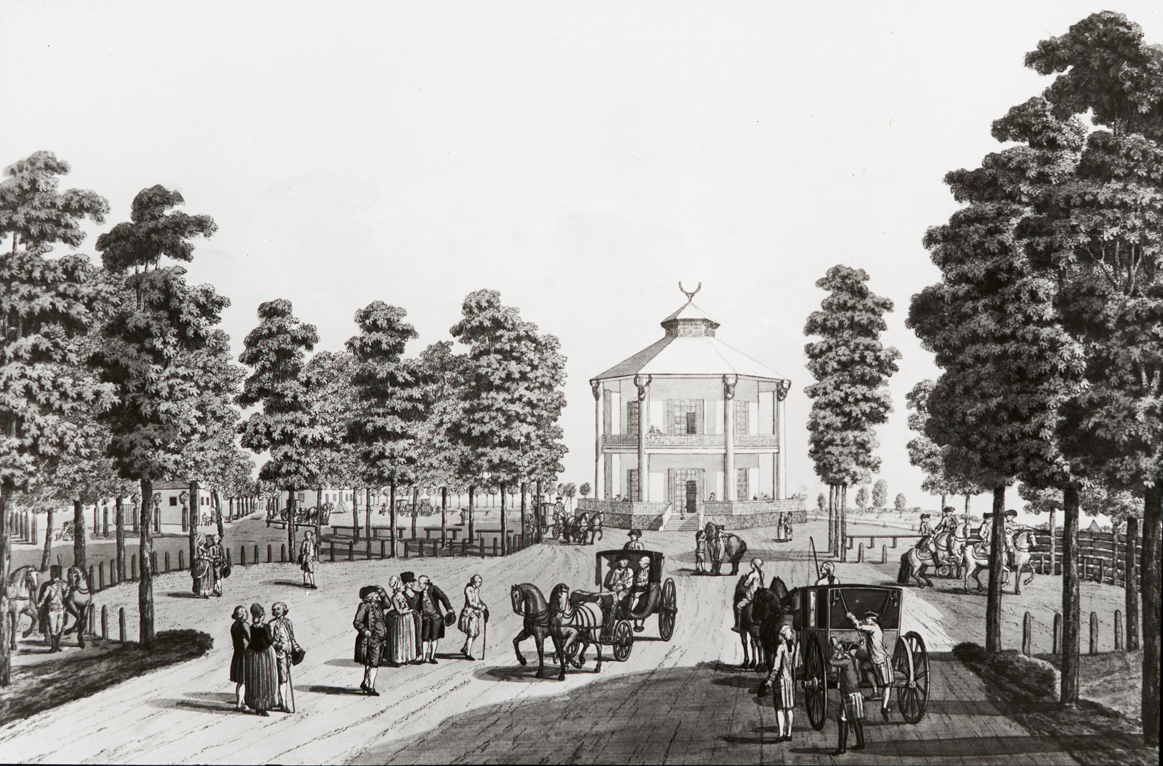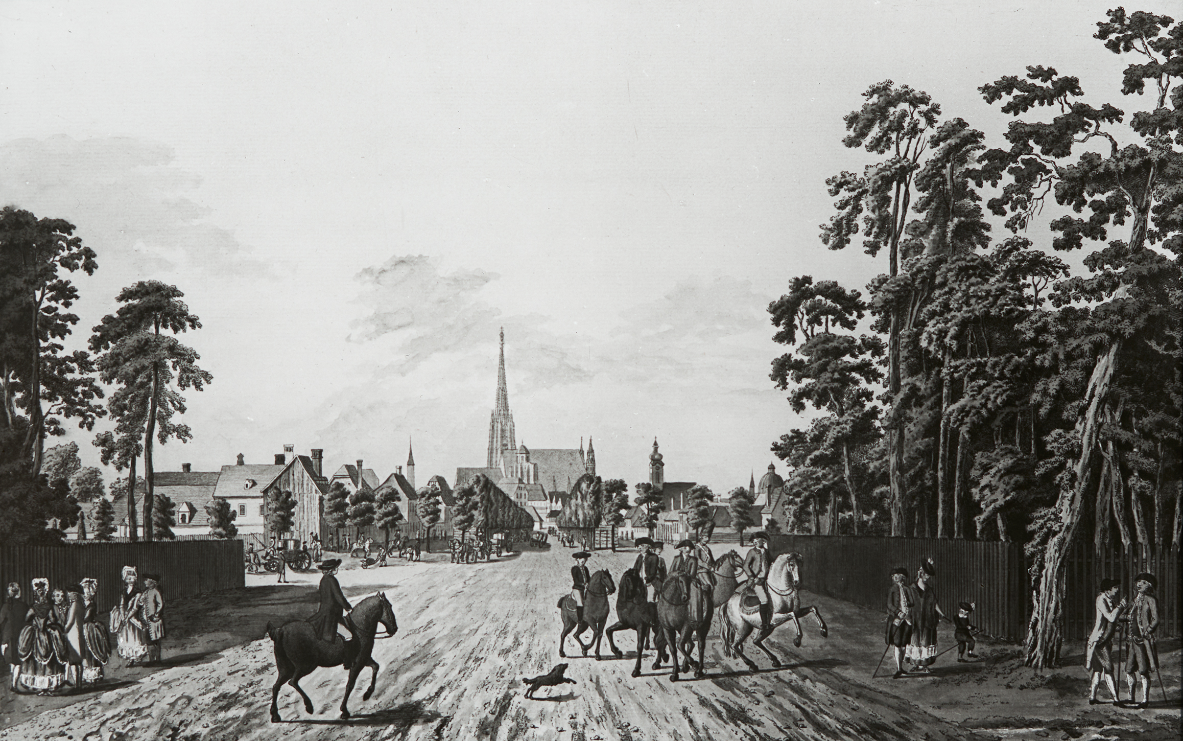 ist eine Darstellung des Wiener Prater 1781. Der Prater befindet sich im zweiten und dritten Wiener Gemeindebezirk und war in der Vergangenheit eine königliche Jagdstätte. Mittlerweile befindet sich dort ein Vergnügungspark (Würstelprater) und eine öffentliche Parkanlage.