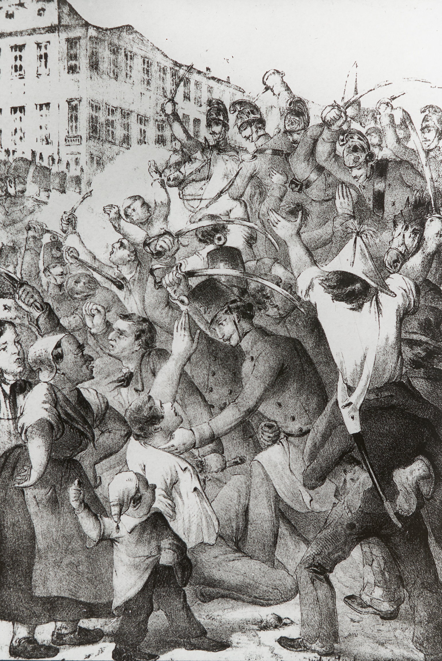 Der Arbeiteraufstand 1848 entstand nach einer Lohnkürzung der Frauen, die Erdarbeit leisteten. Am 21. August 1848 gab es daraufhin erstmalig einen Frauenaufstand. Zwei Tage später kam es im Prater dazu, dass die Männer an der Seite der Frauen gegen die Lohnkürzung demonstrierten. Dieser Aufstand wurde gewaltsam beendet, 22 Leute starben, ca. 300 Personen wurden verletzt.