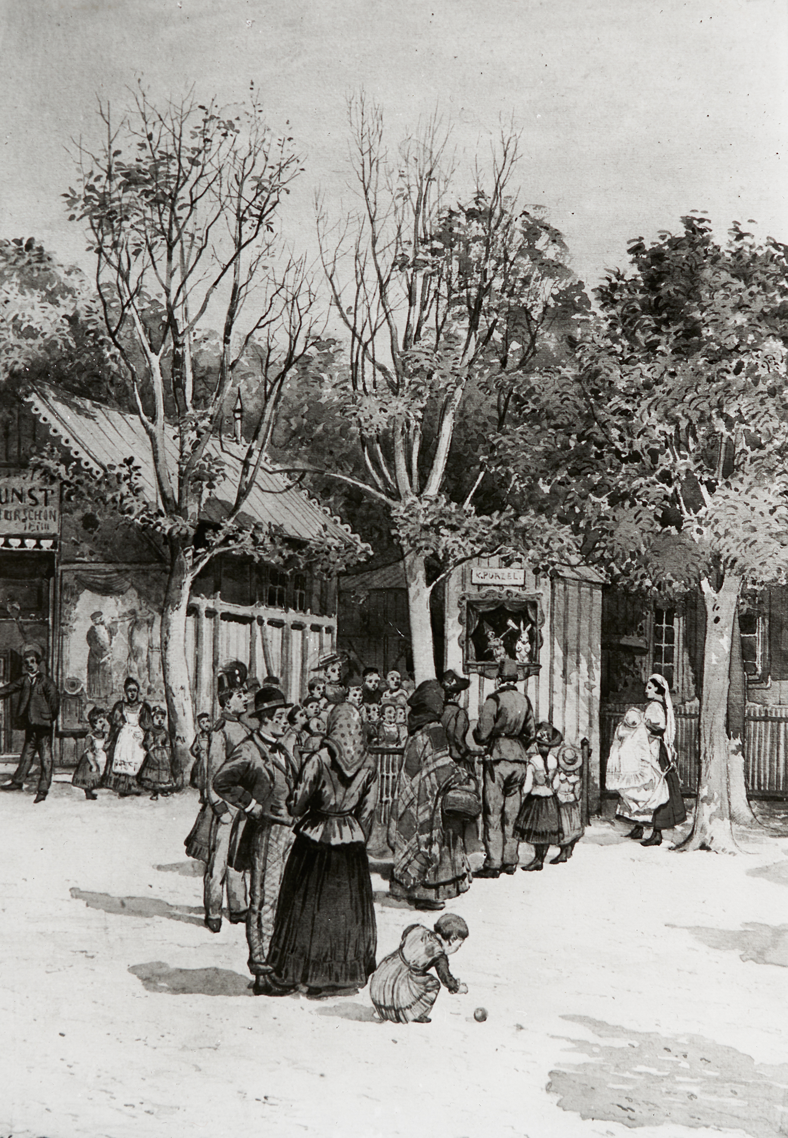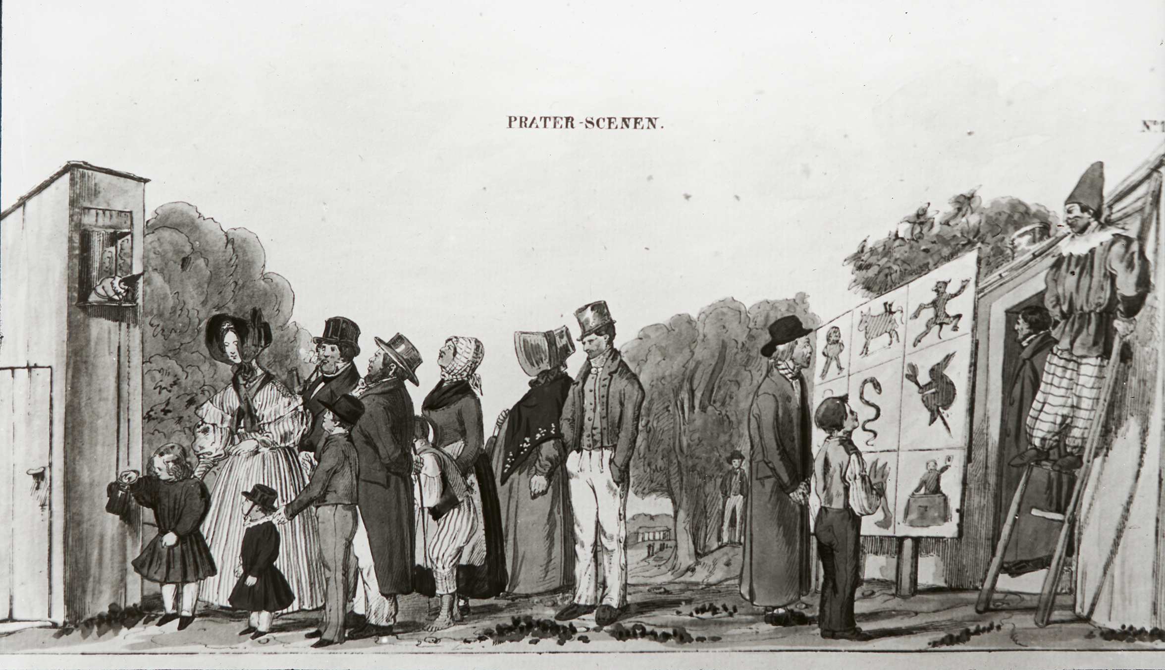 Im Volksprater konnten sich die Menschen auch vom Kasperl unterhalten lassen. Besonders beliebt war dieser unter den jüngeren Bevölkerungsgruppen.