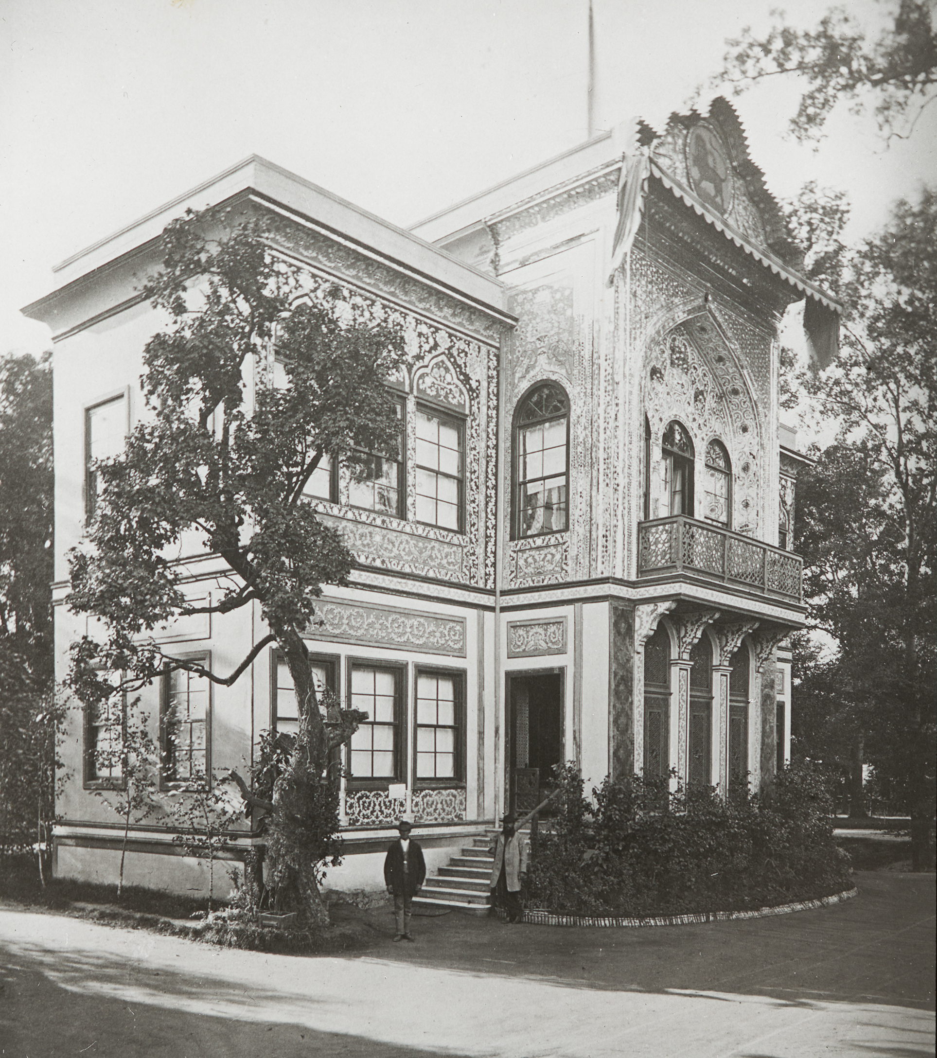 Für die Weltausstellung 1873 wurde im Wiener Prater ein Persischer Pavillon erbaut. Der damalige Schah von Persien besuchte die Ausstellung, weshalb der Pavillon gebaut wurde. Die Finanzierung des Hauses erfolgte durch Wiener Unternehmen.