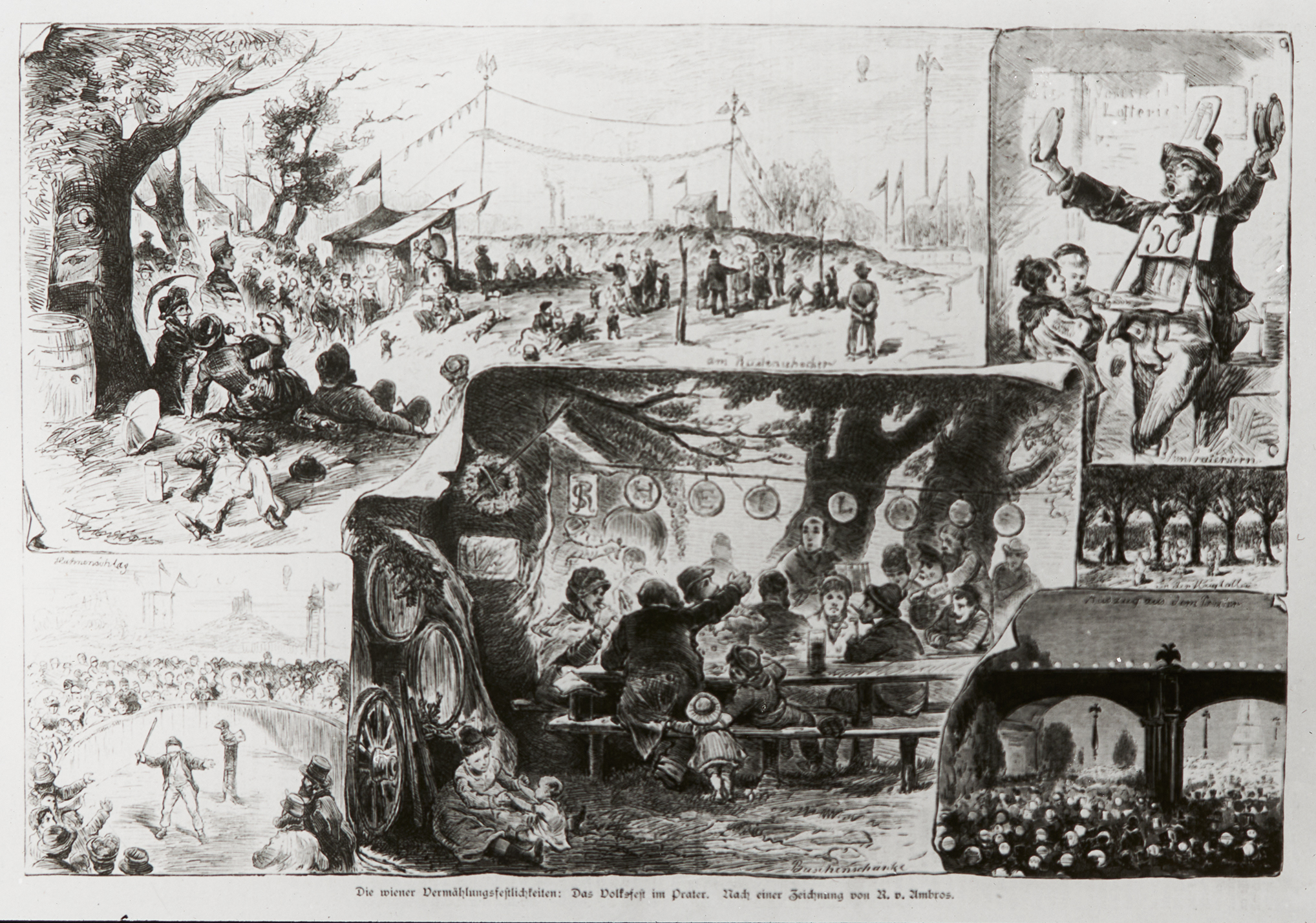 Am 24. April 1854 heirateten Kaiser Franz Josef I. und Elisabeth von Österreich, genannt Sisi. Anlässlich dessen kam es im Prater zu einem großen Volksfest.