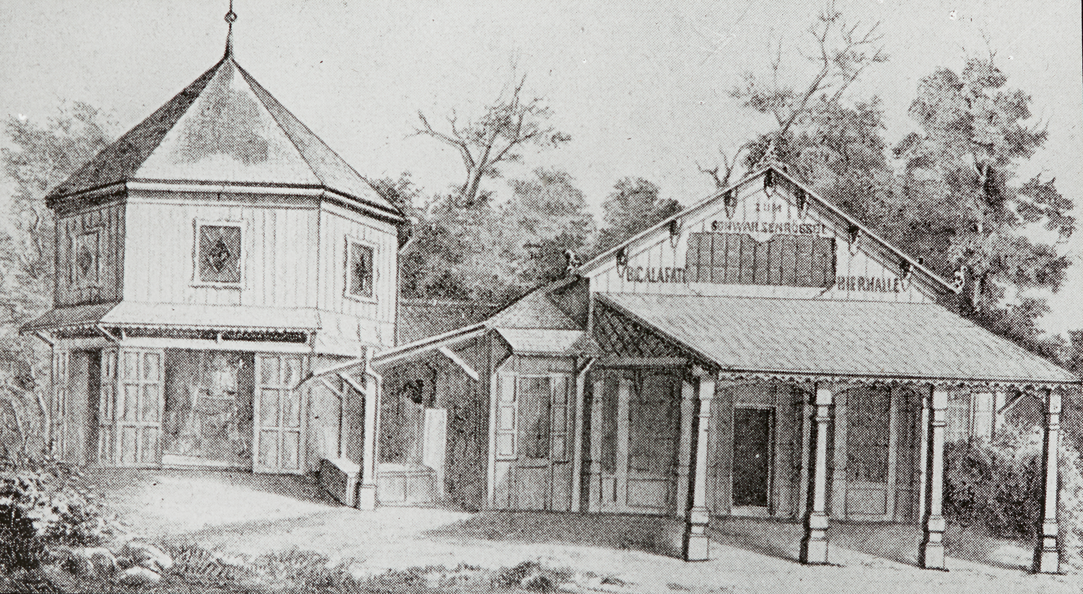 Diese Landschaft zeigt die drei Kaffeehäuser im Prater und das rege Leben, das sich um diese Lokale bildete.