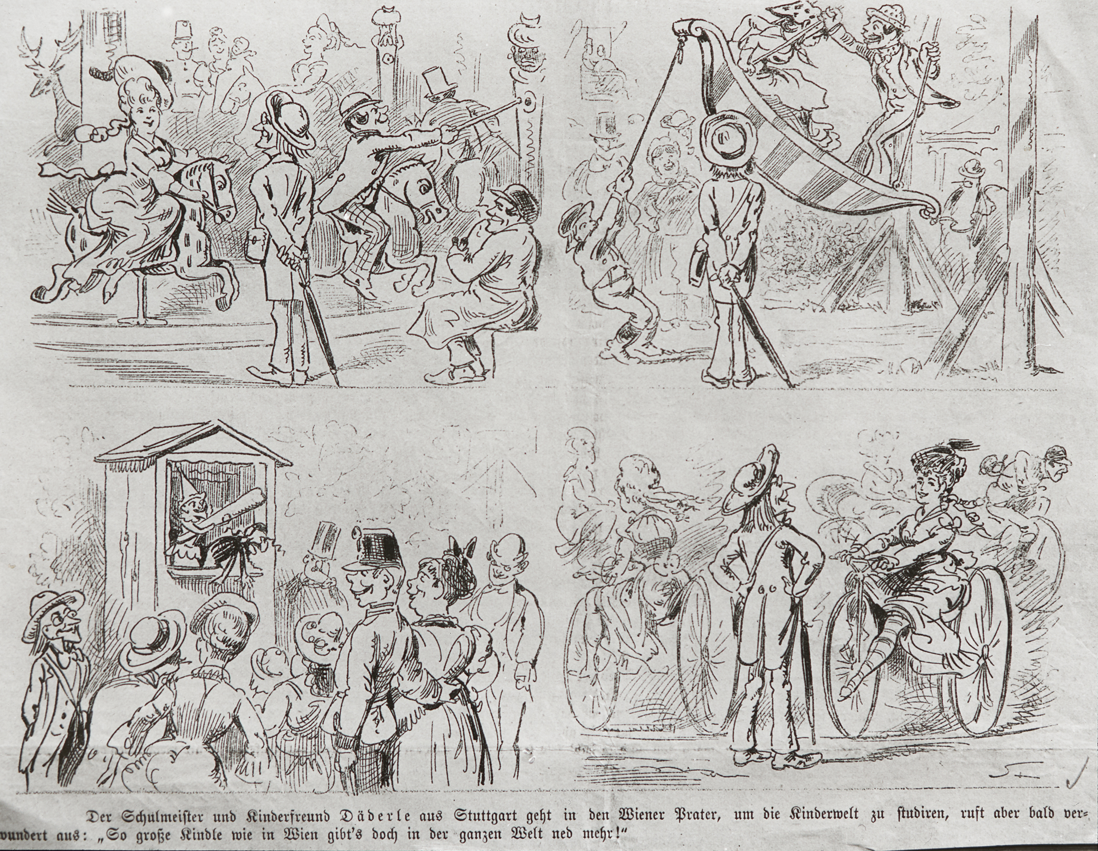 Der Schulmeister und Kinderfreund Däderle aus Stuttgart geht in den Wiener Prater, um die Kinderwelt zu studieren, ruft aber bald verwundert aus: "So große Kindle wie in Wien gibt's doch in der ganzen Welt ned mehr!"