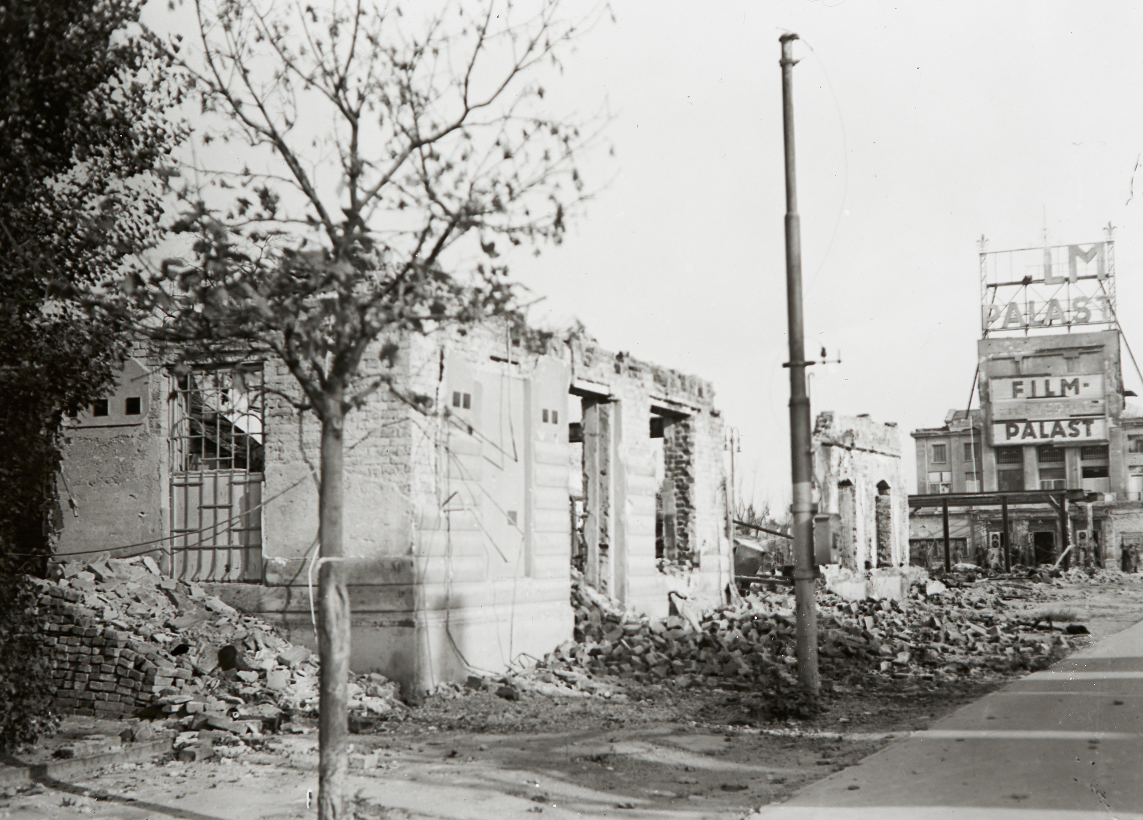 Wien hatte nach dem zweiten Weltkrieg große Schäden im Stadtbild, die wiederaufgebaut werden mussten. Dazu gehörte auch das Riesenrad im Prater. 1944 wurde das Riesenrad durch eine Bombe schwer beschädigt, hier ist der Zustand des Wahrzeichens am 21. November 1945 zu sehen. Erst 1947 konnte das Riesenrad wieder in Betrieb genommen werden.