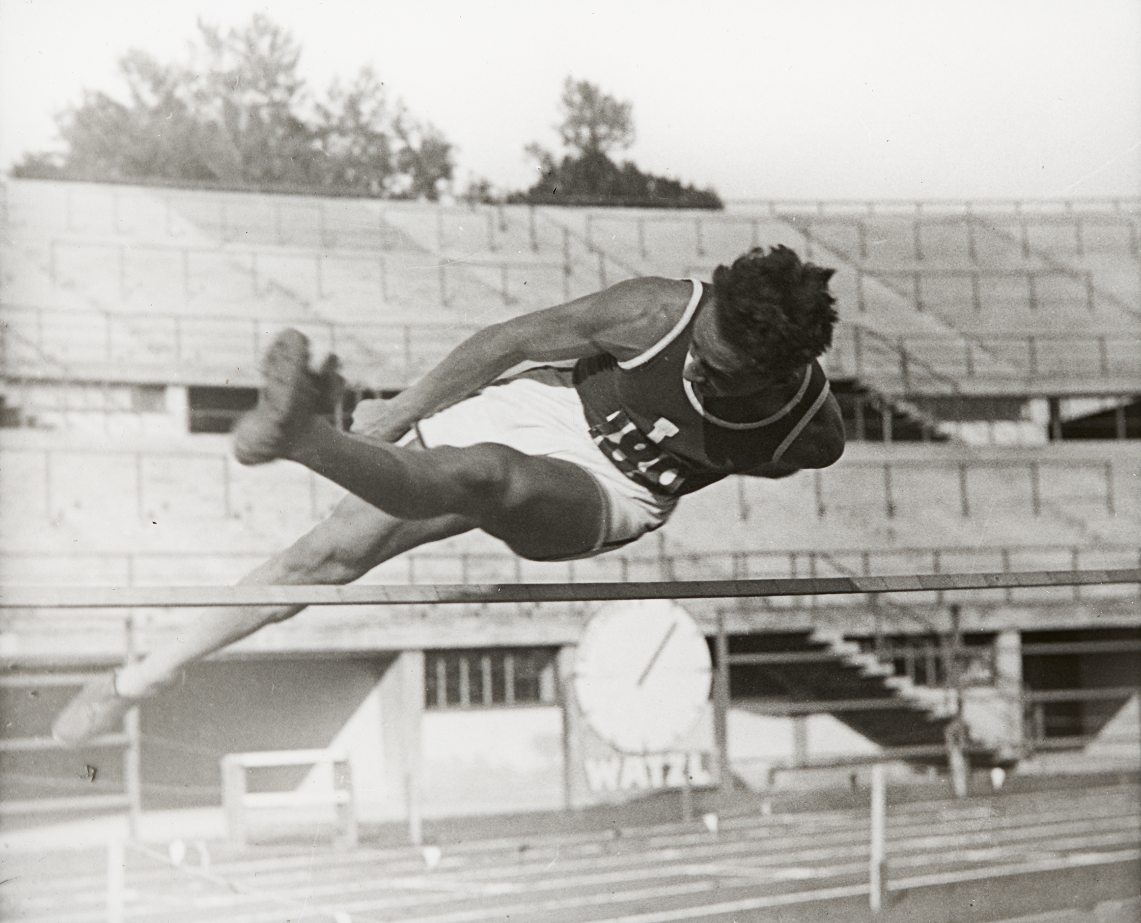 Neben Fußball, Schwimmen und Radfahren bot Wien auch Platz für Athletinnen und Athleten der Leichtathletik. Dieser Mann wurde beim Hochsprung fotografiert.