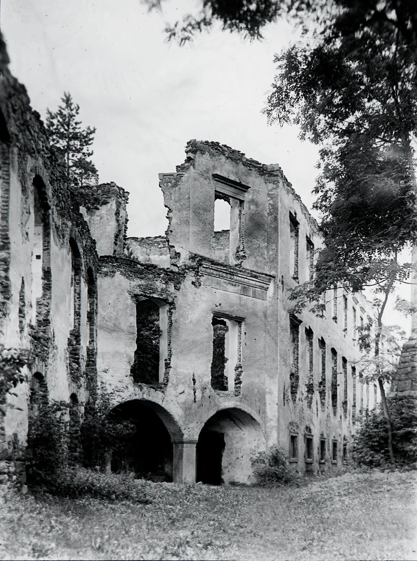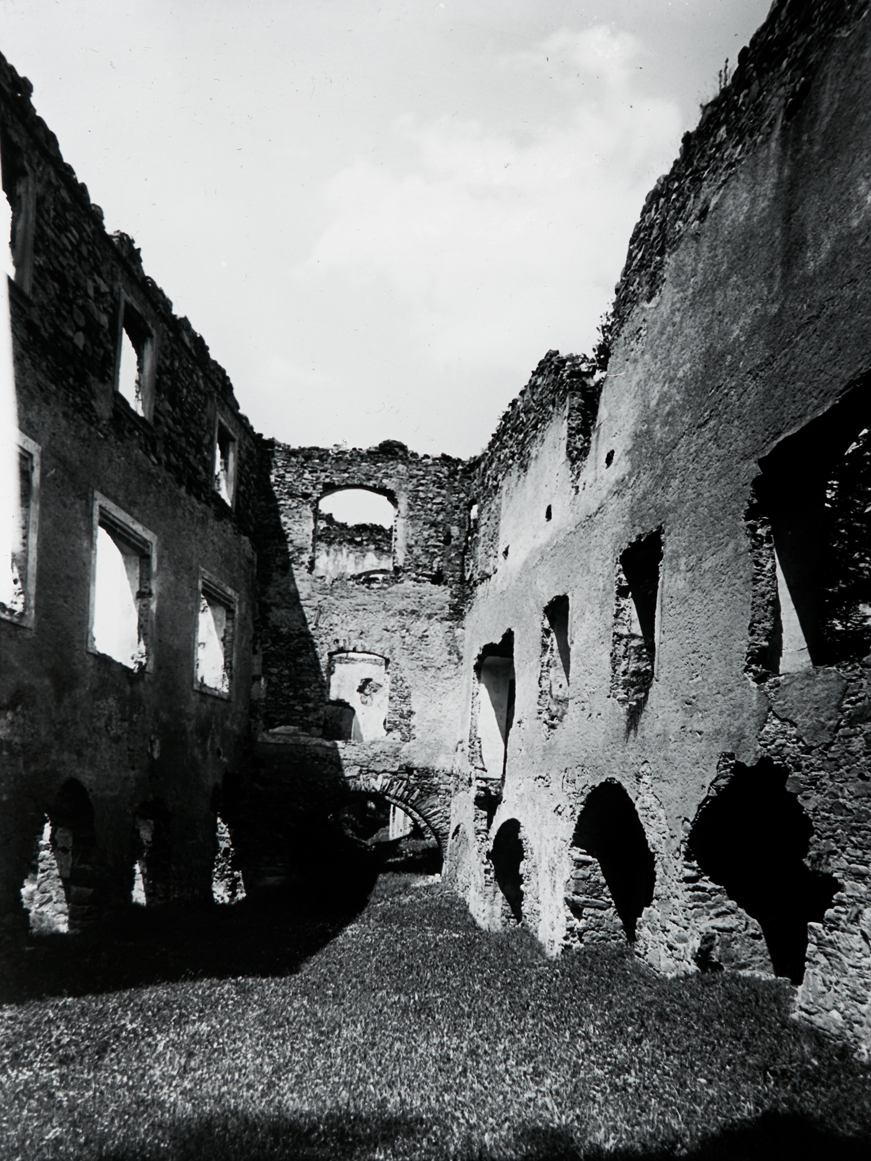 Hier erkennt man den verwilderten Innenbereich der Mauern einer Ruine.