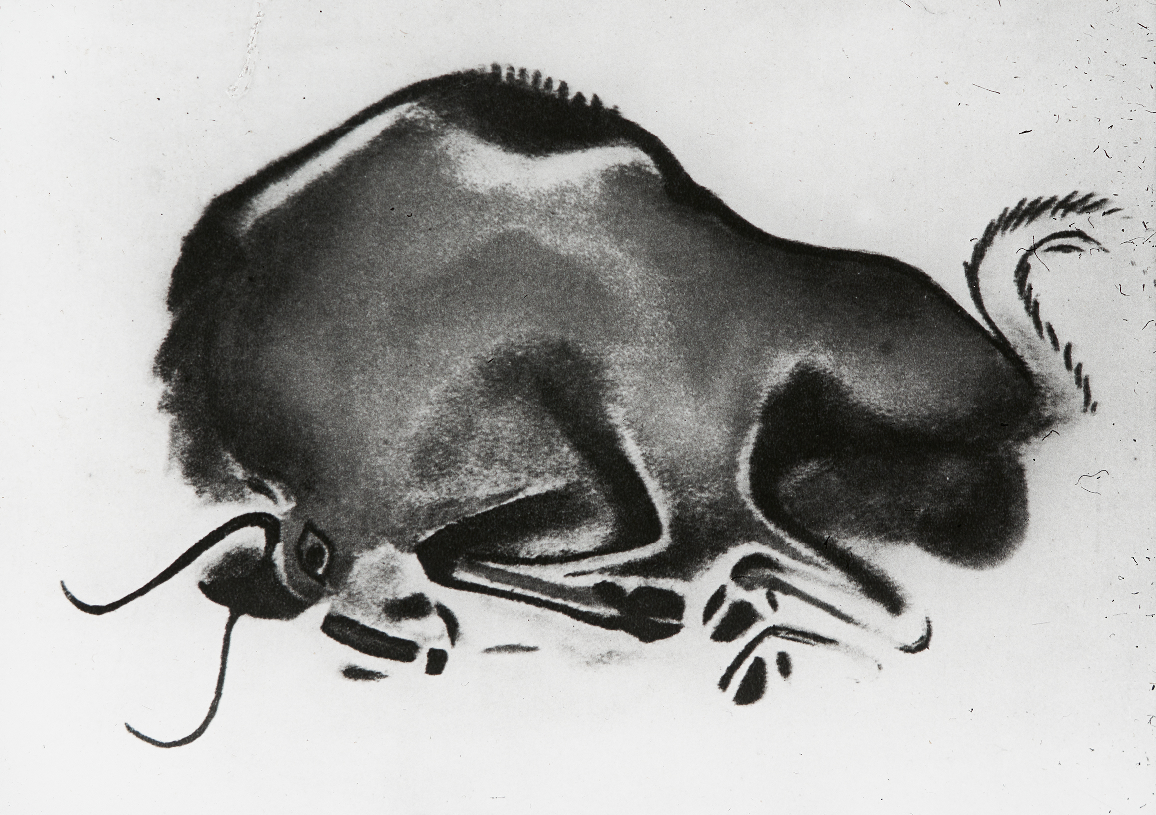 Eine Wandmalerei, die ein Bison darstellt. Diese Malerei wurde in der Höhle von Altamira in Spanien gefunden.