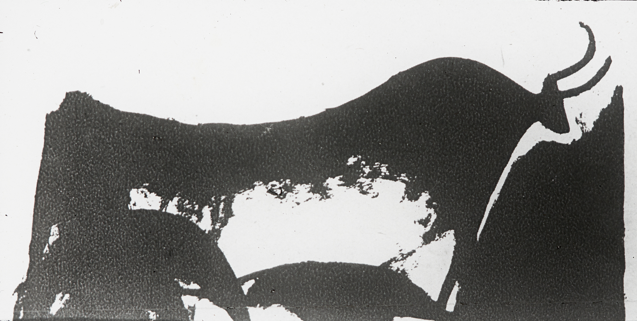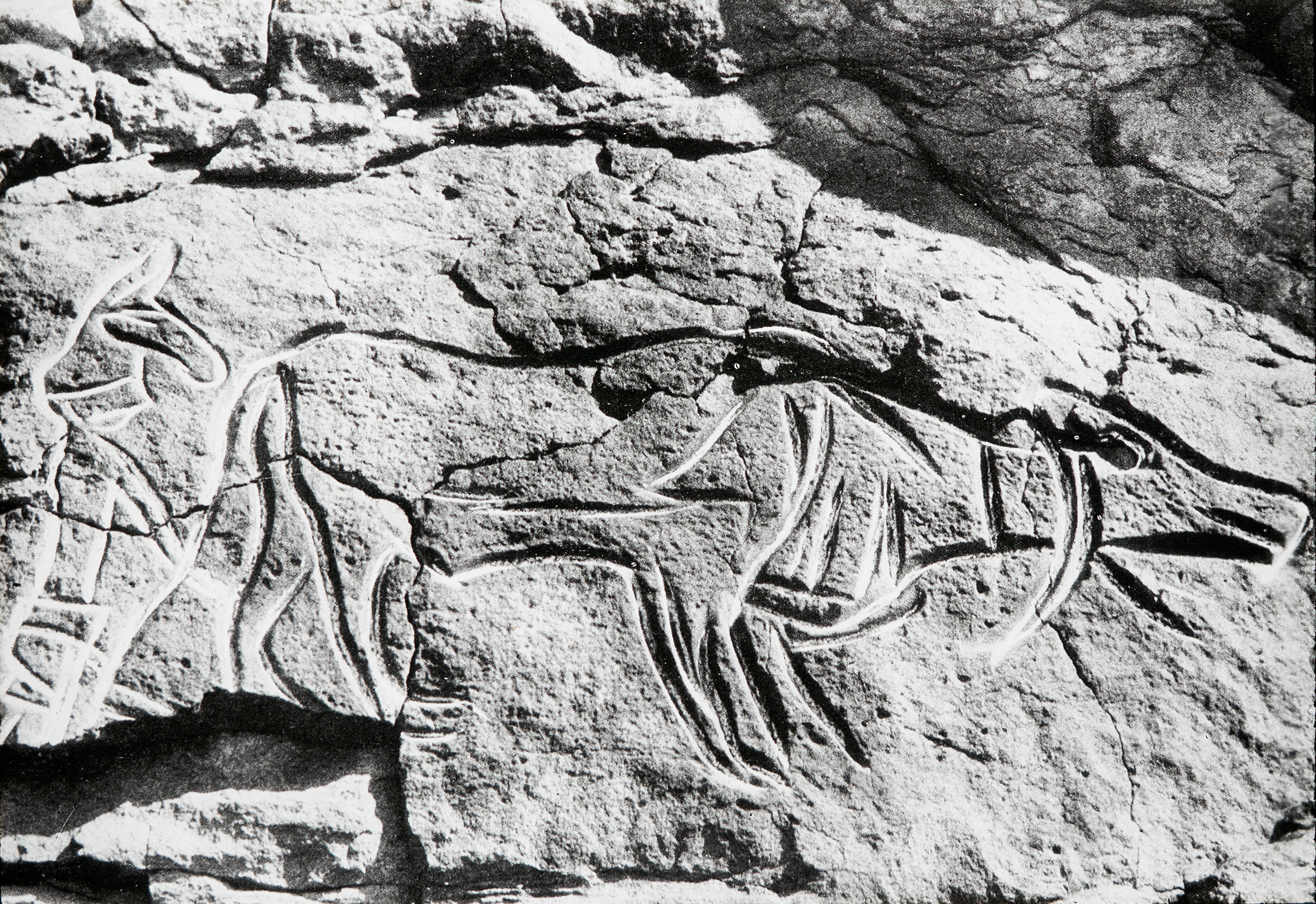 In diesen Stein wurden die Umrisse eines Tiers gemeisselt.