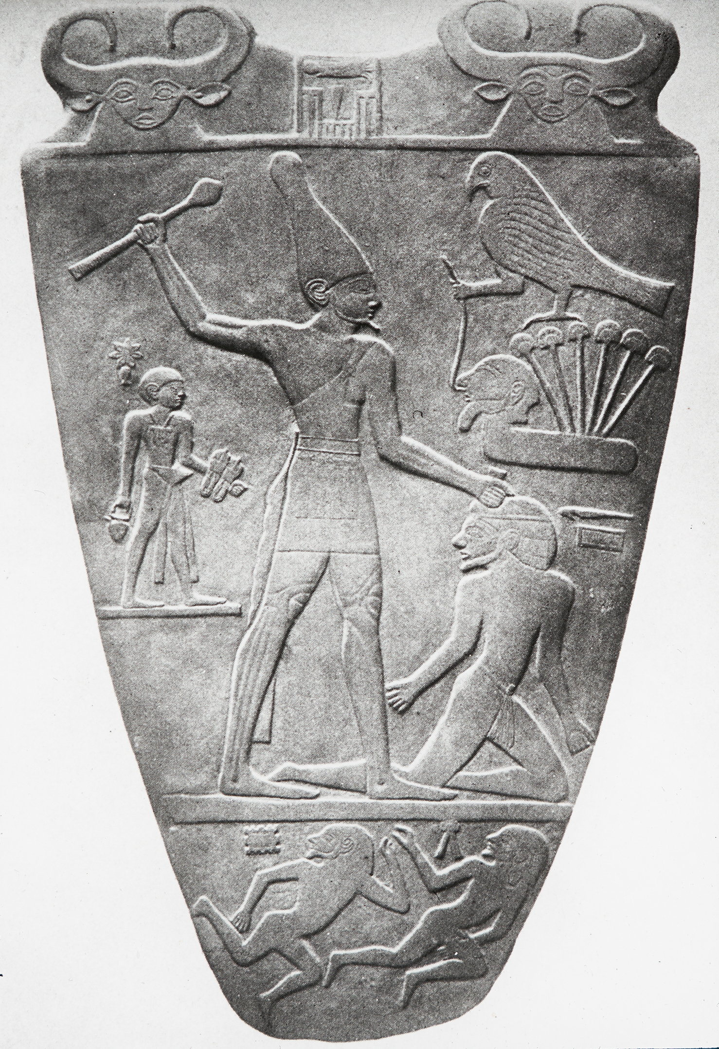 Diese Prunkpalette ist Narmer gewidmet. Er war der erste König der ersten ägyptischen Dynastie.