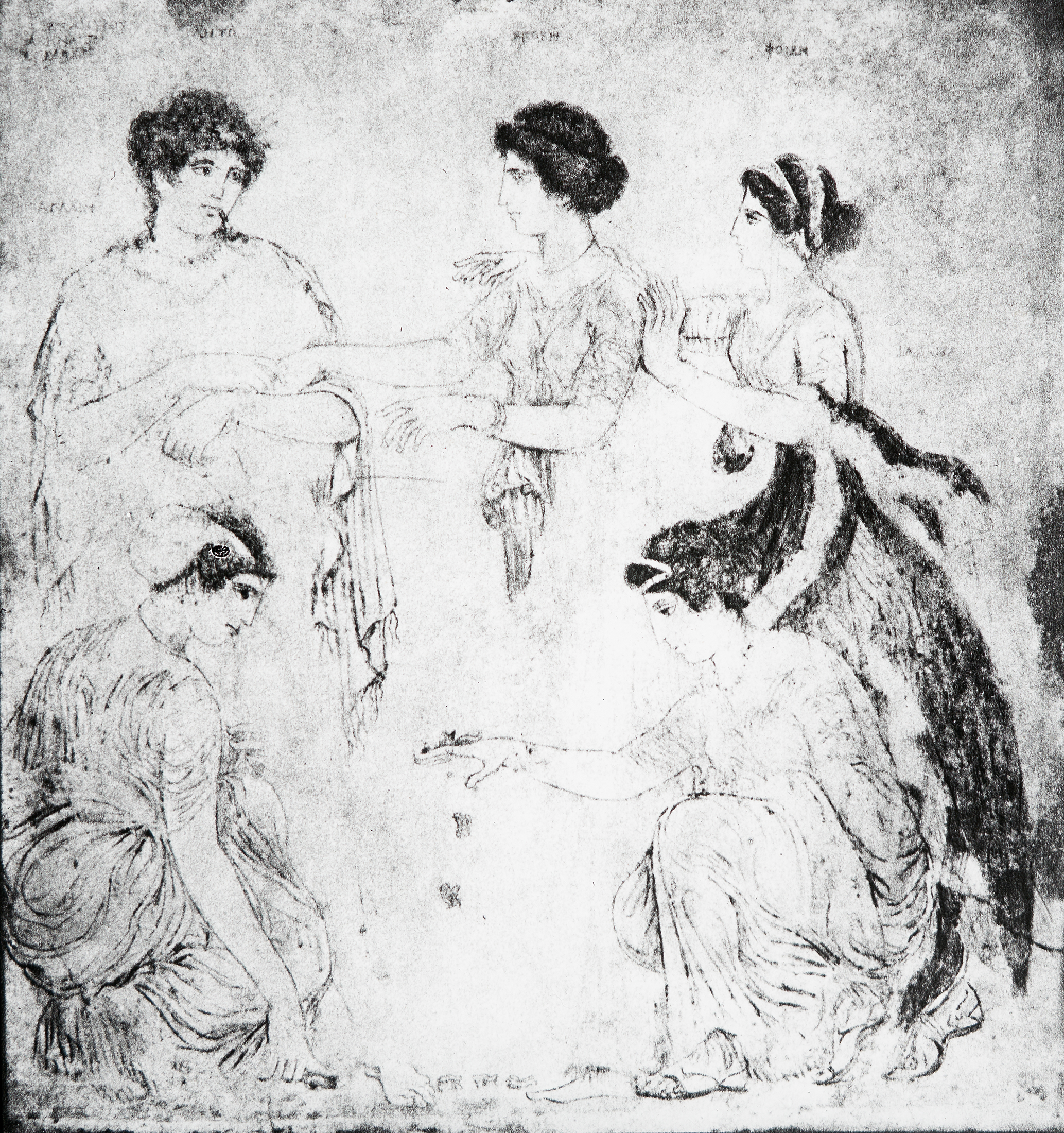 Im unteren Teil des Fresco erkennt man zwei Niobiden, Hilearia und Agle. Dahinter sieht man Phoebe, diese versucht Leto und Niobe zu beruhigen. Die Niobiden sind die Kinder von Amphion und Niobe. Niobe verärgerte aufgrund der Vielzahl ihrer Kinder und des damit einhergehenden Stolz die Göttin Leto. Apollon und Artemis, die Kinder der Leto, brachten deshalb die Niobiden um.