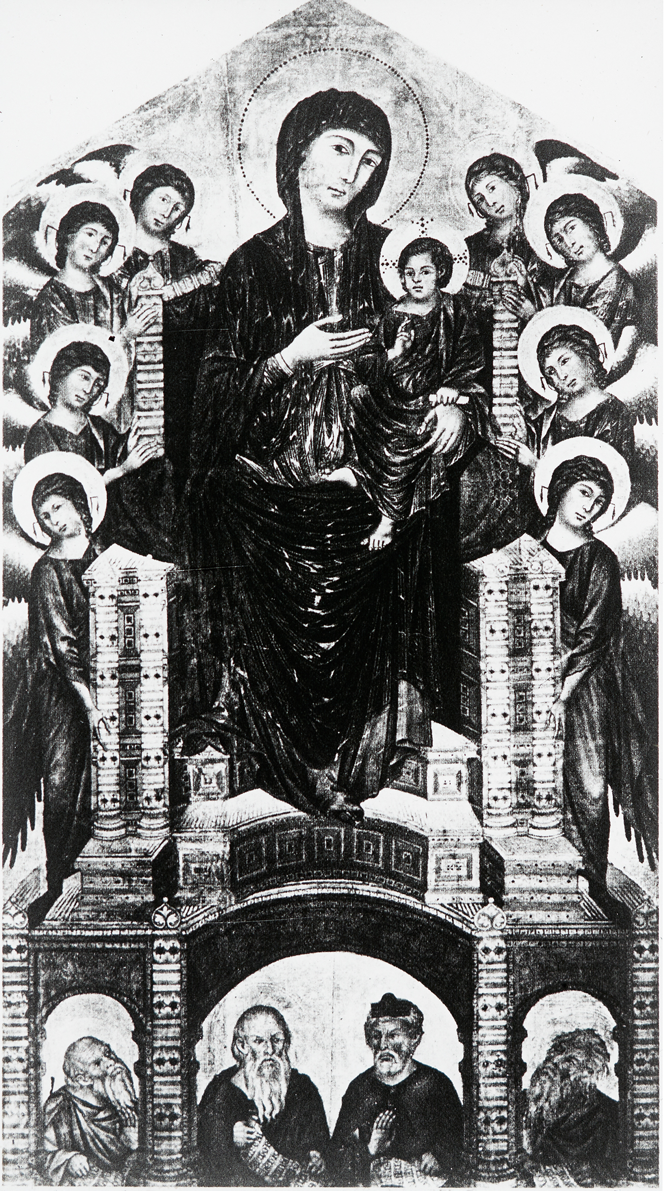 Die Thronende Madonna wurde von 1272 bis 1274 vom Künstler Cimabue gemalt. Es befand sich in der Santa Trinita, einer Klosterkirche in Florenz. Heute befindet sich das Gemälde in den Uffizien, einem Kunstmuseum in Florenz.