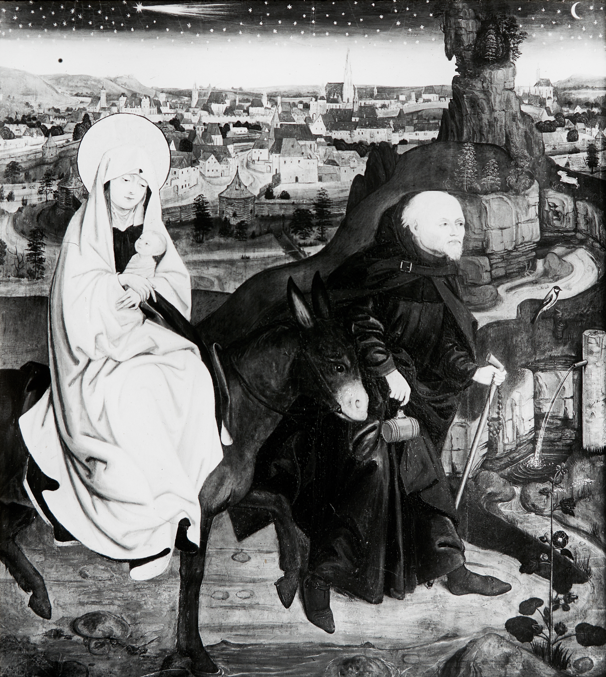 Dieses Gemälde befindet sich im Wiener Schottenstift. Abgebildet ist die Flucht der "heiligen Familie" nach Ägypten.