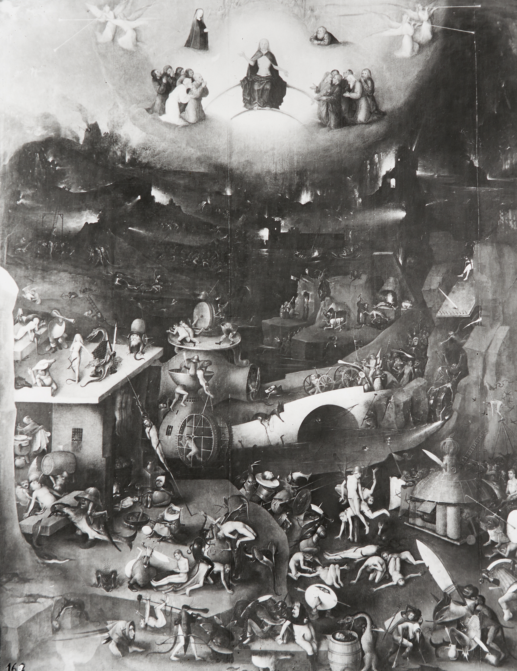 Dieses Gemälde ist ein Teil des Triptychons "Das Weltgericht". Es wurde von Hieronymus Bosch gemalt und befindet sich aktuell in der Akademie der Bildenden Künste in Wien.