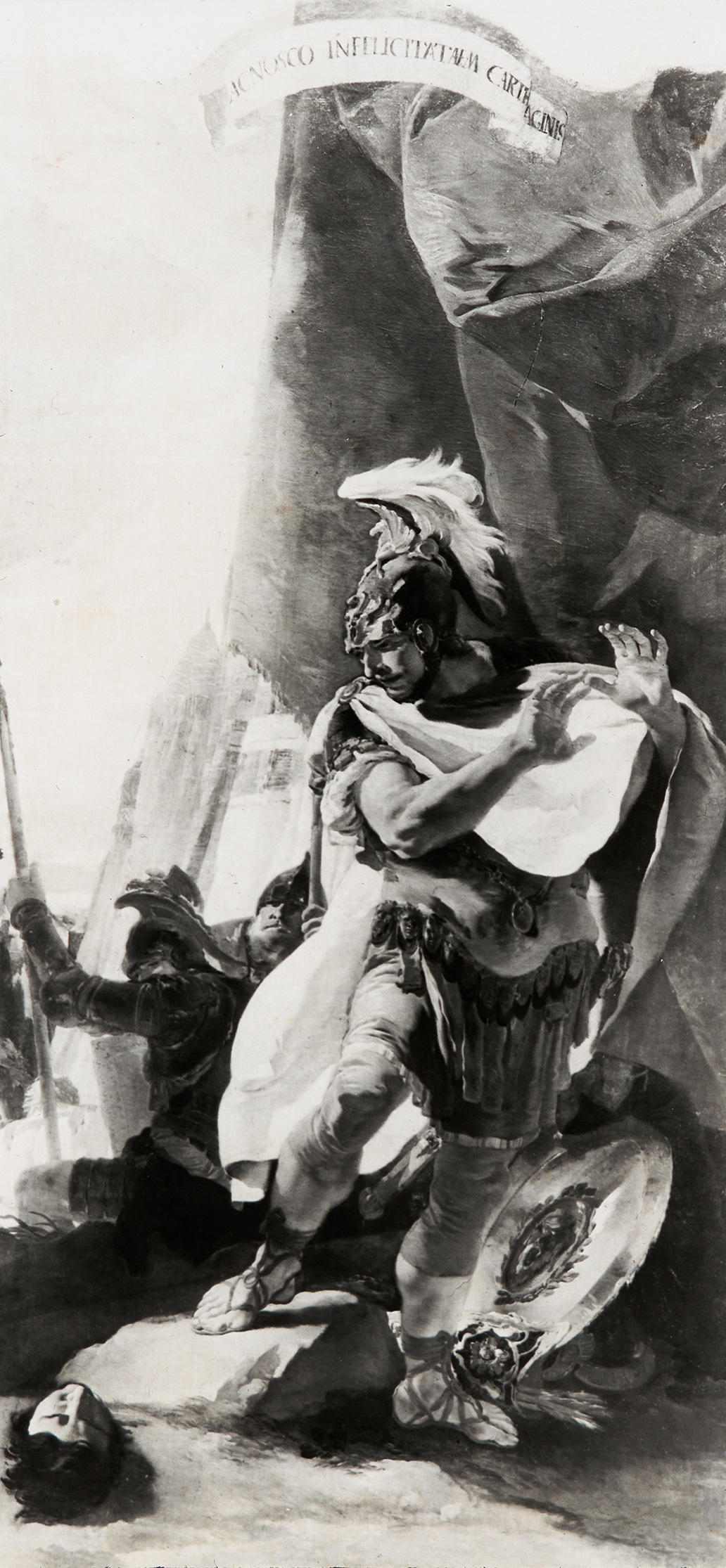 Giovanni Battista Tiepolo lebte von 1696 bis 1770. "Hannibal erkennt den Kopf seines Bruders Hasdrubal" zeigt den Kriegsherrn Hannibal, der den abgetrennten Kopf von Hasdrubal am Boden liegen sieht. Das Gemälde wurde gemalt für den Palazzo Dolfin in Venedig. Heute befindet es sich im Kunsthistorischen Museum in Wien.