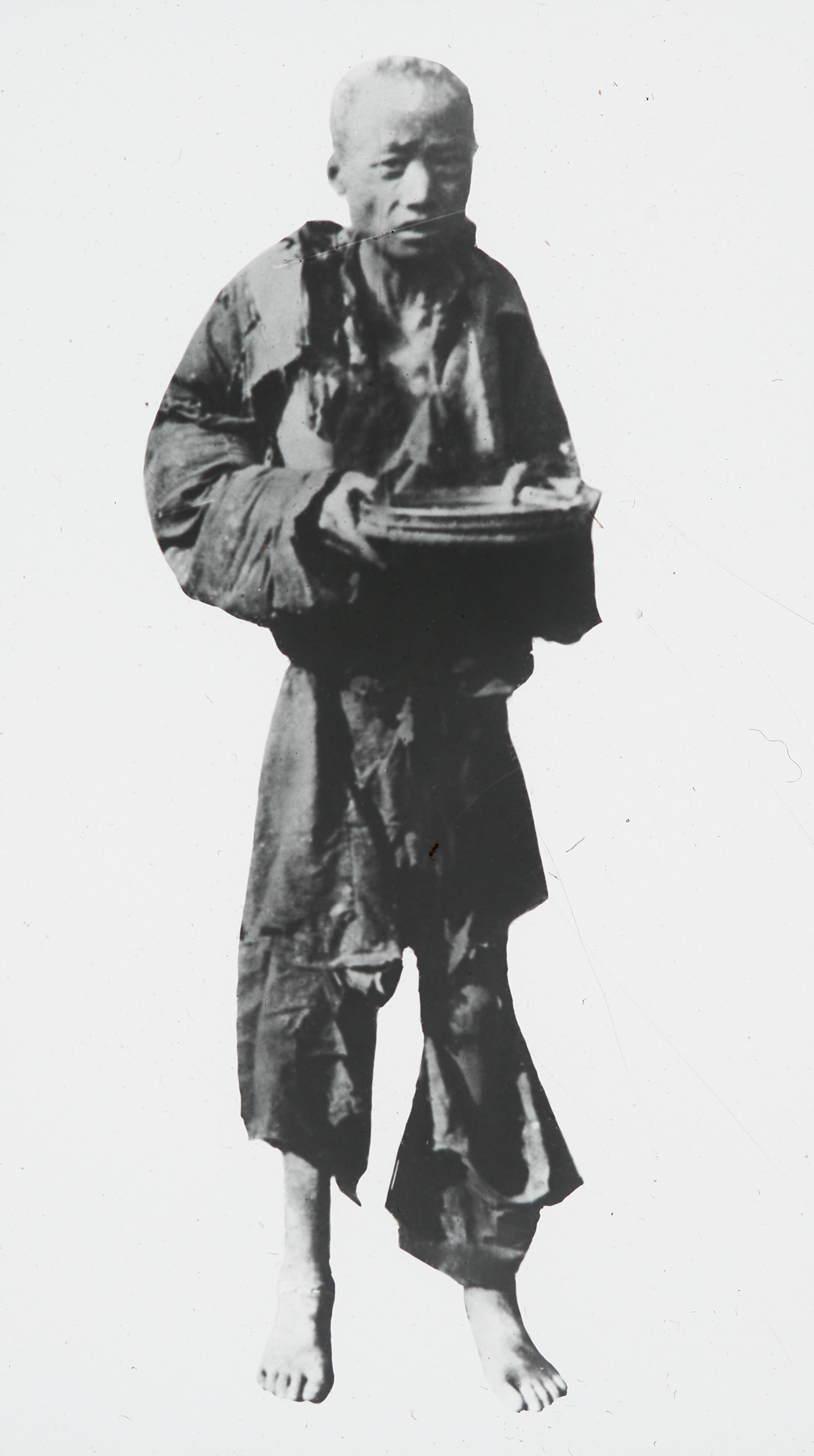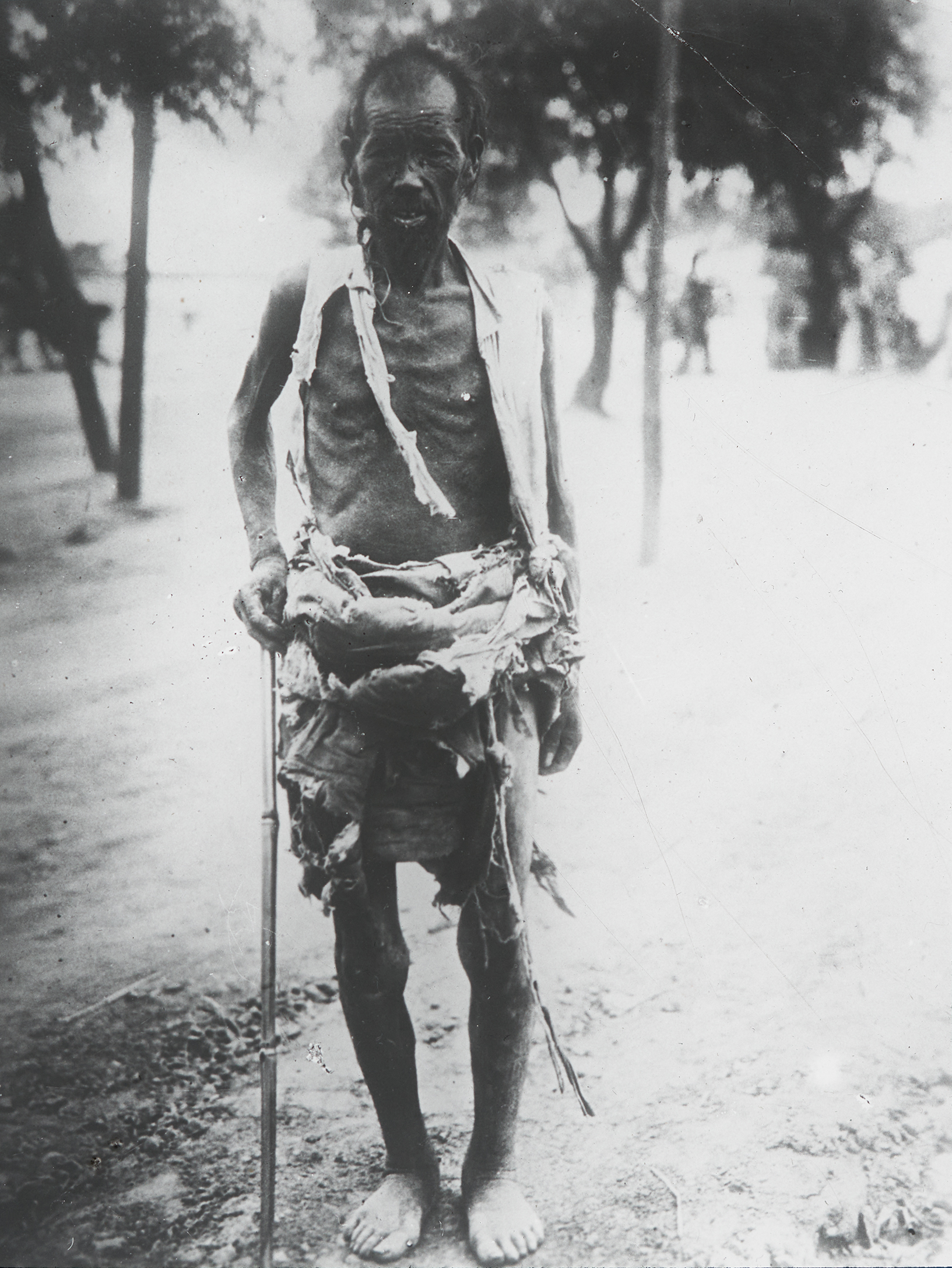 Dieser Mann ist unterernährt. Er trägt zerrissene Kleidung.
