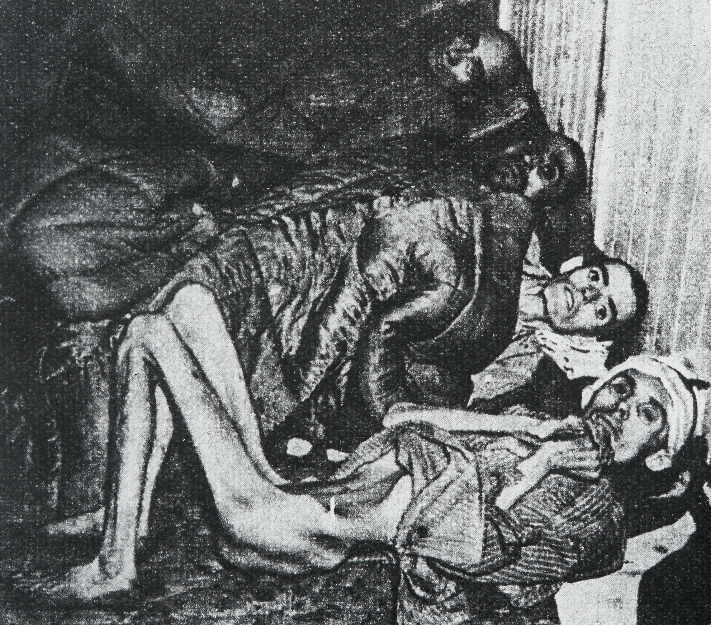 Nach der Befreiung des KZ Bergen-Belsen wurden diese Überlebenden gefunden. Die Befreiung fand im Mai 1945 statt, die Gefangenen sind stark abgemagert und liegen auf engstem Raum nebeneinander. Das KZ Bergen-Belsen befand sich im heutigen Niedersachsen und war von April 1943 bis April 1945 als Konzentrationslager aktiv. Mindestens 52000 Gefangene starben während dieser Zeit.