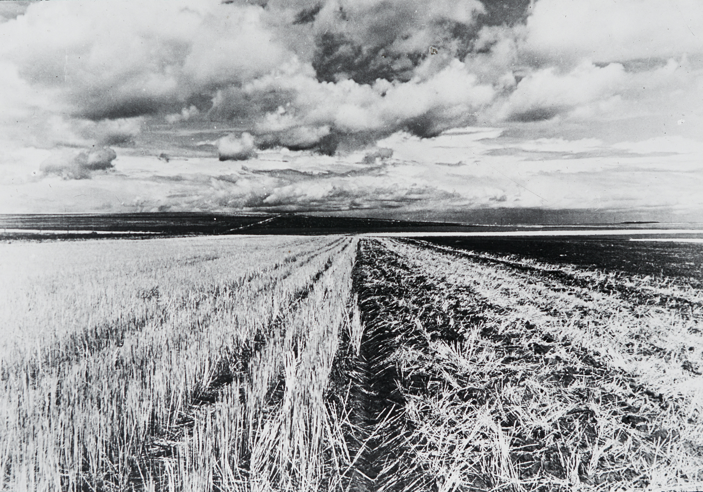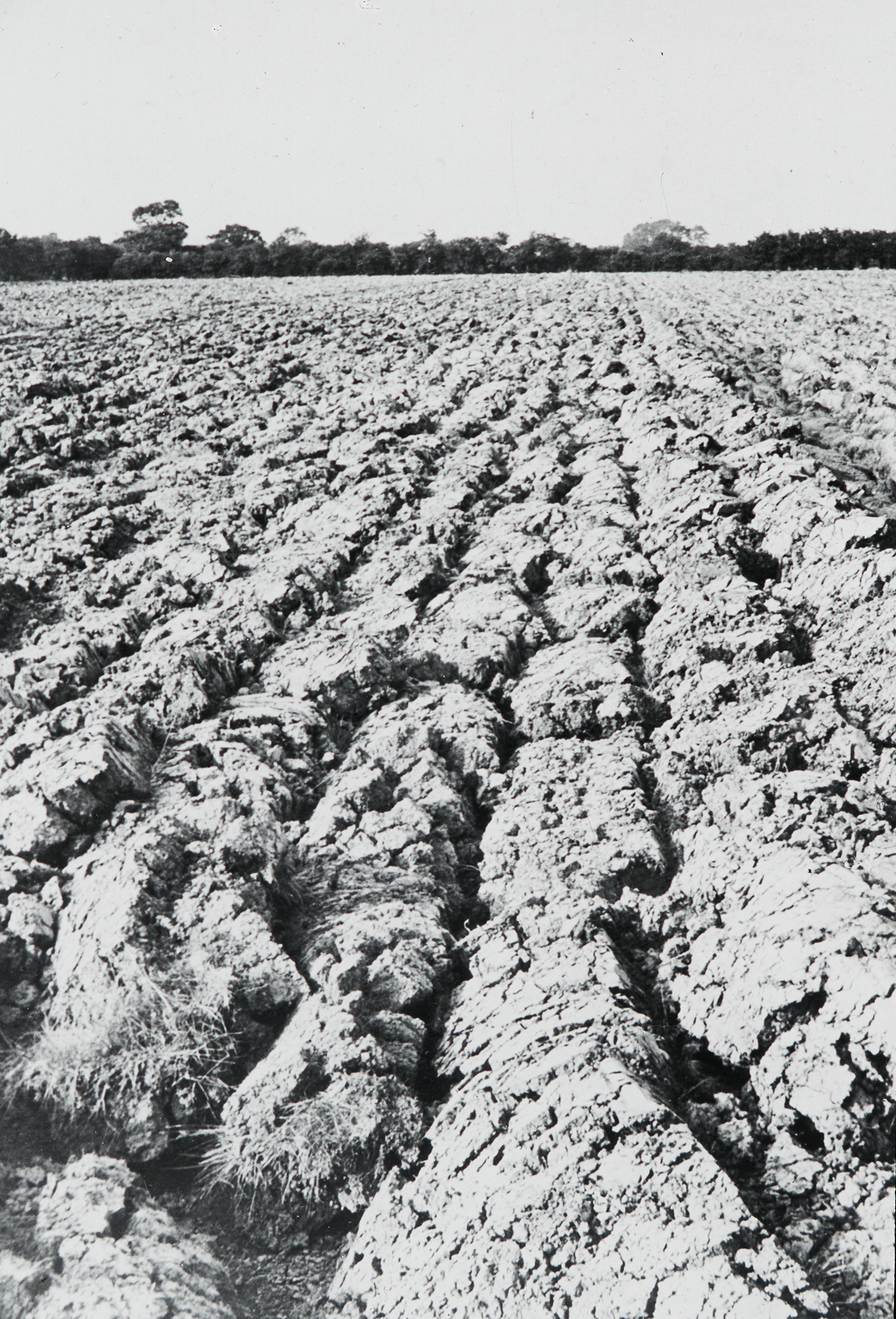 Dieses Feld wird mit einem Pflug bewirtschaftet.