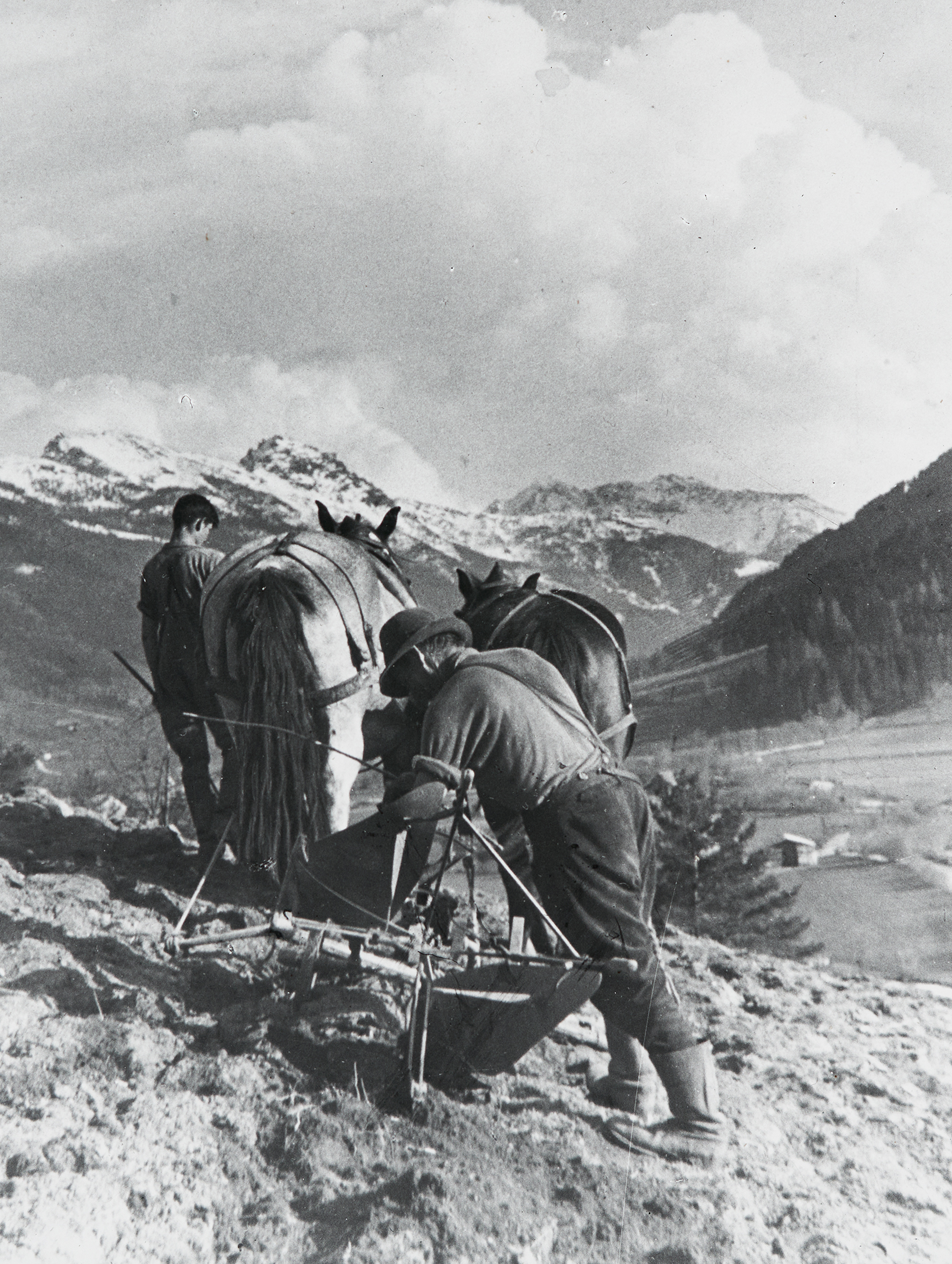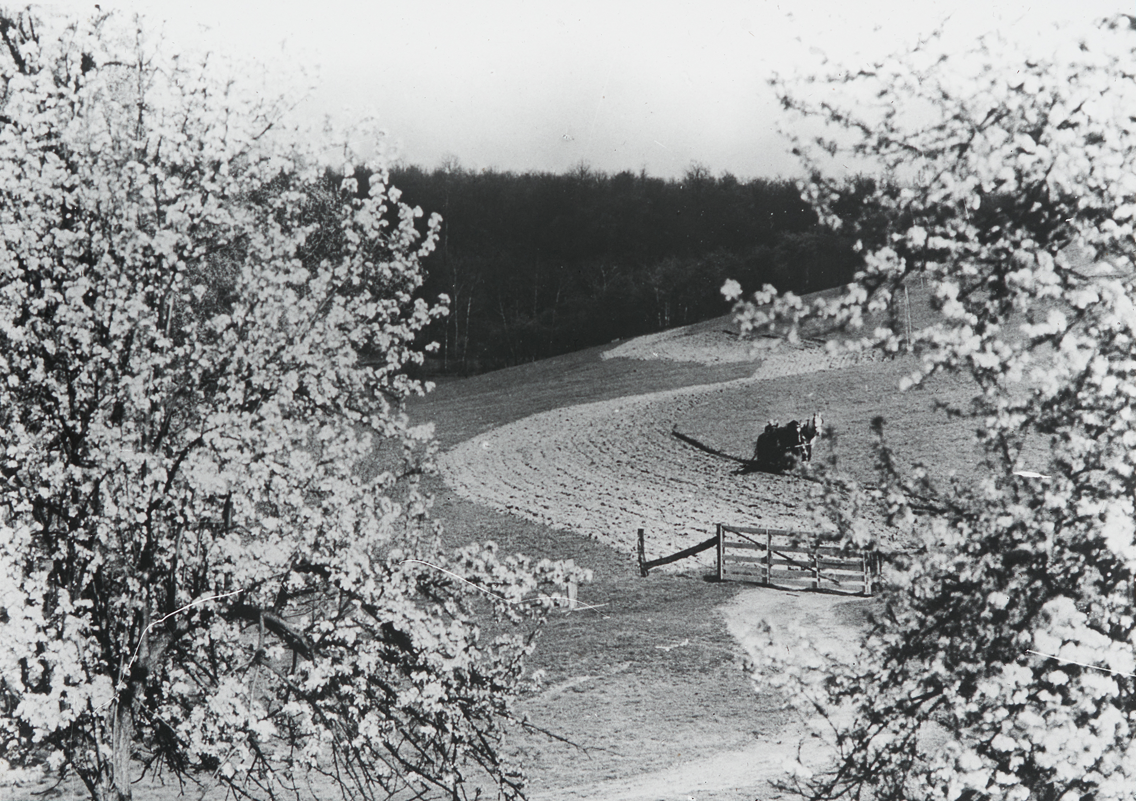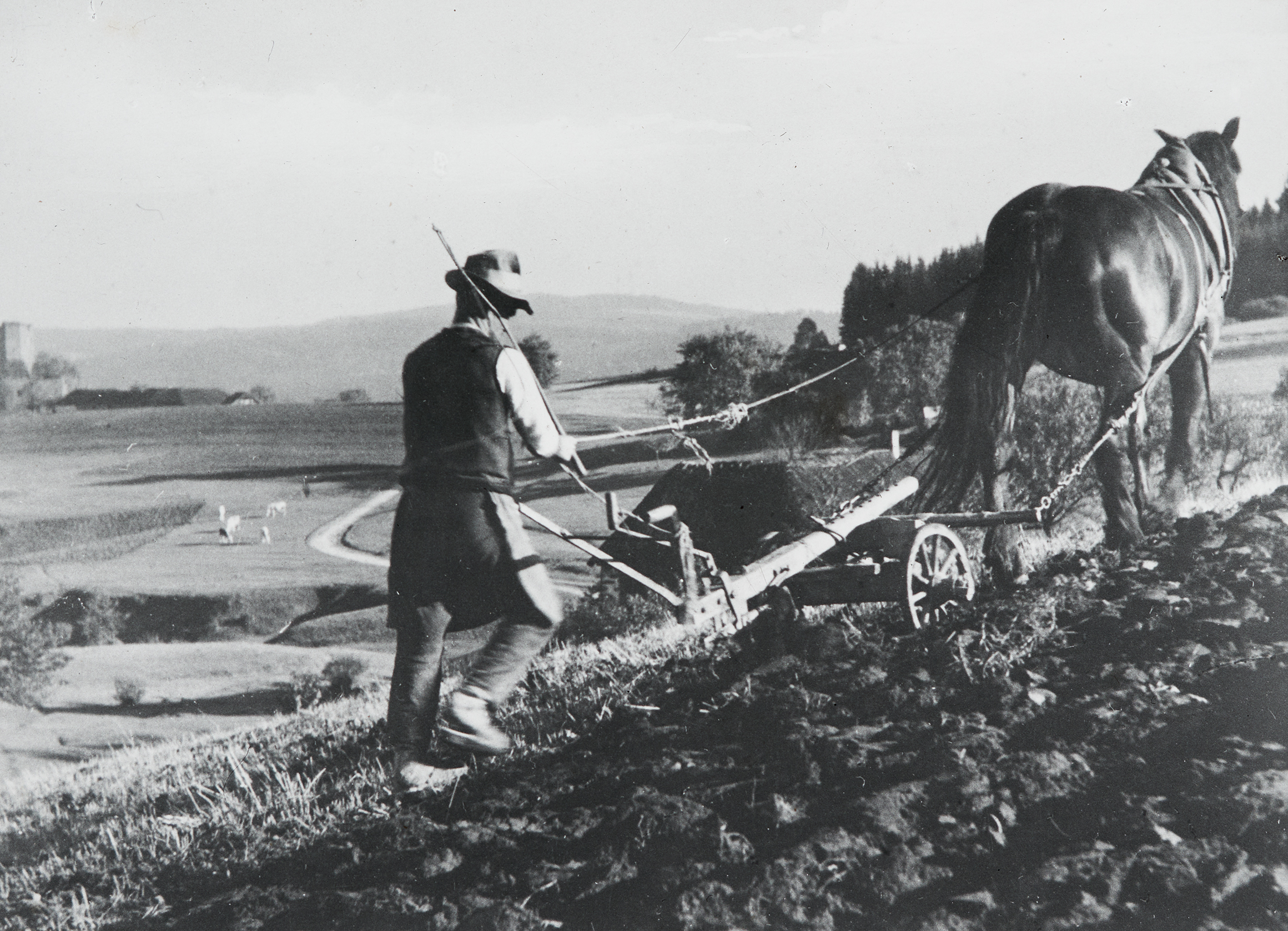 Der Ackerbau ist ein wichtiger Teil der Landwirtschaft. Hier wird das Feld mit Hilfe von Pferden bepflanzt.