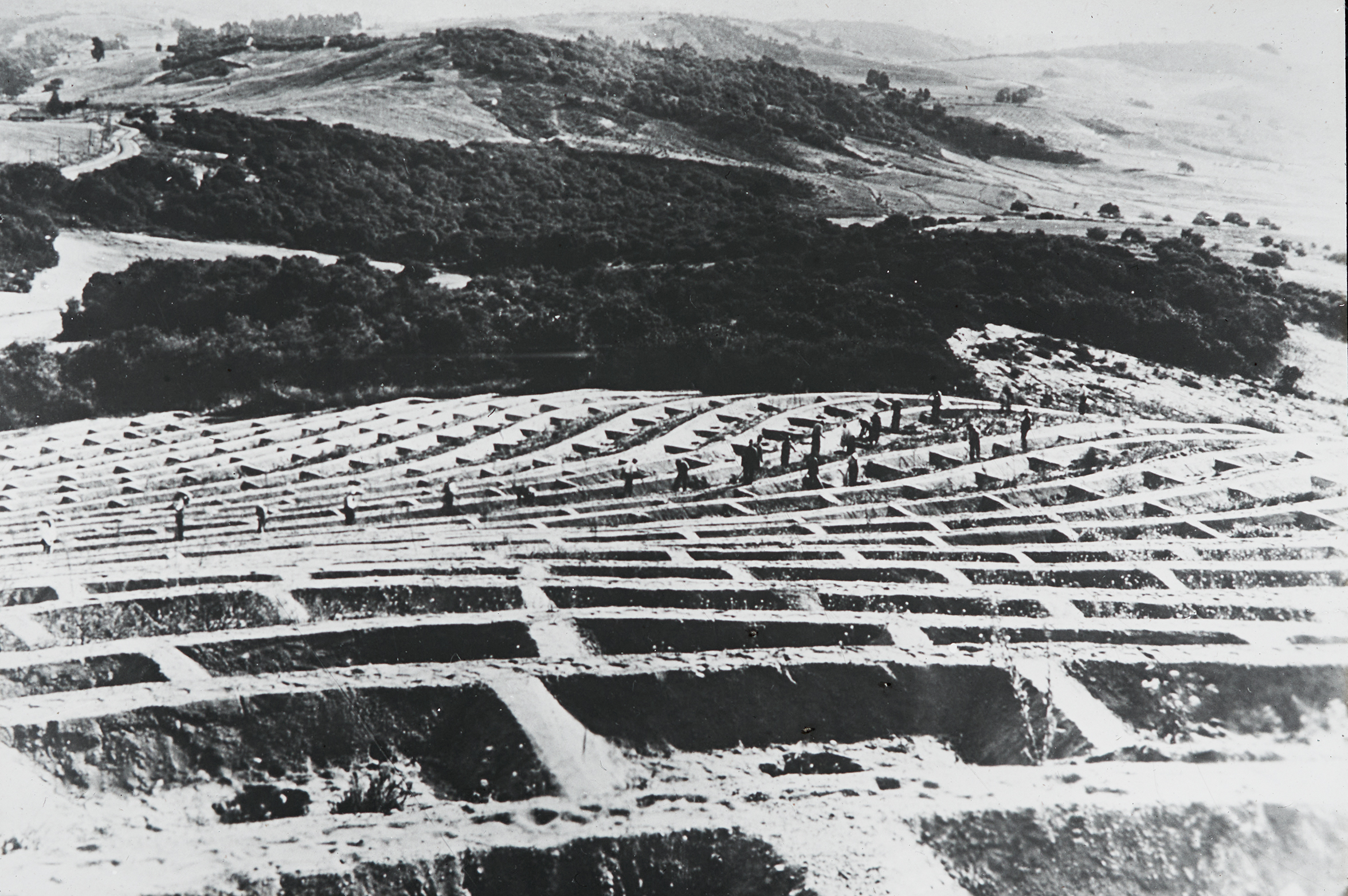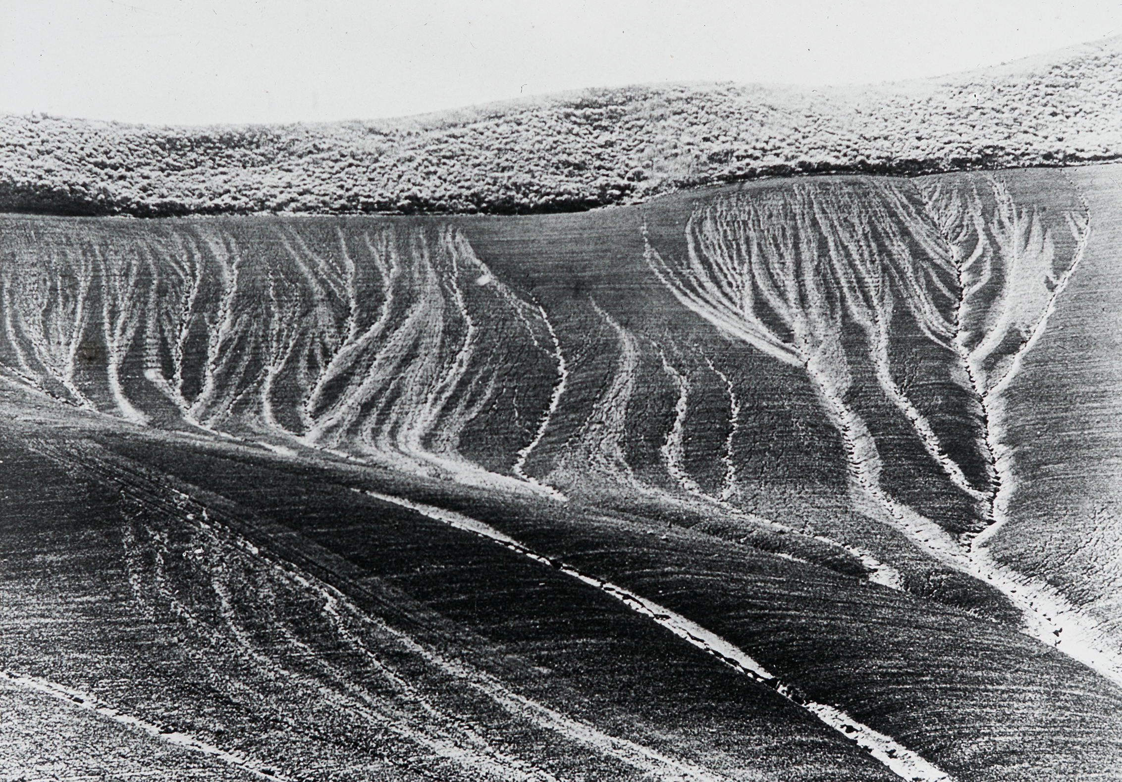 Diese Furchen im Feld sind präventiv, um Erosion zu verhindern.