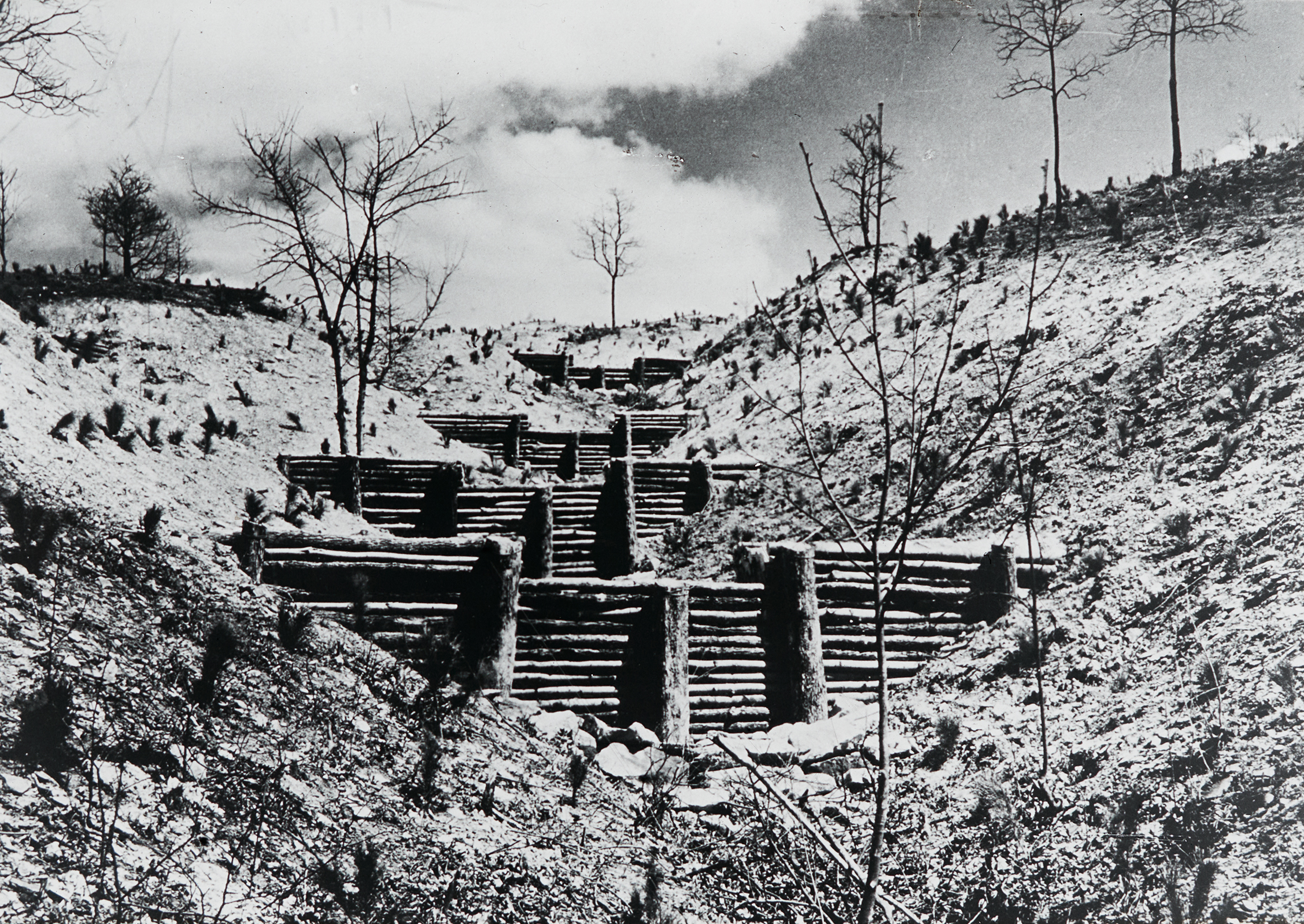 Dieses Schild zeigt, dass der Wald im Hintergrund 1939 gepflanzt wurde. Dies veranlasste die US-Amerikanische Abteilung für Agrar- und Forstwirtschaft.