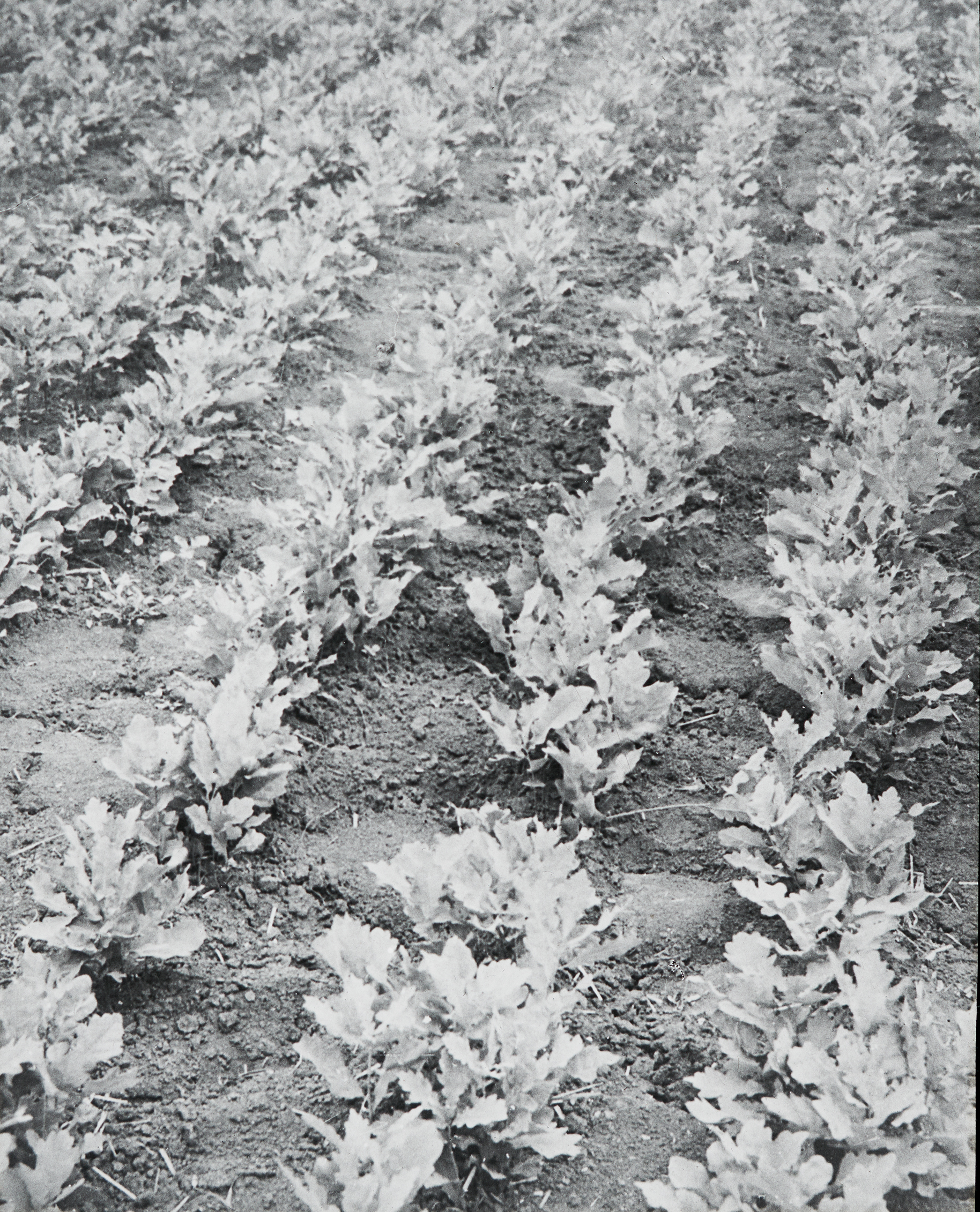 Auf diesem Feld wird reihenweise Gemüse angepflanzt.