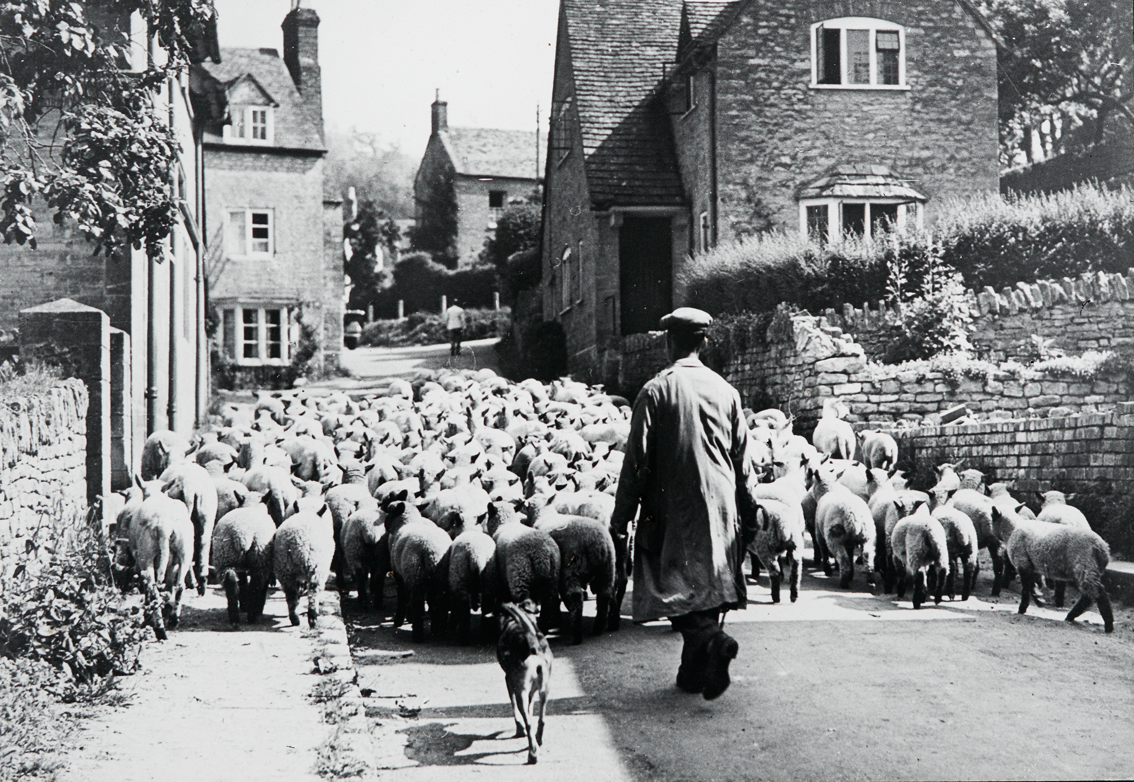 Dieser Schäfer kümmert sich um eine Schafsherde. Neben ihm läuft ein Hund her.