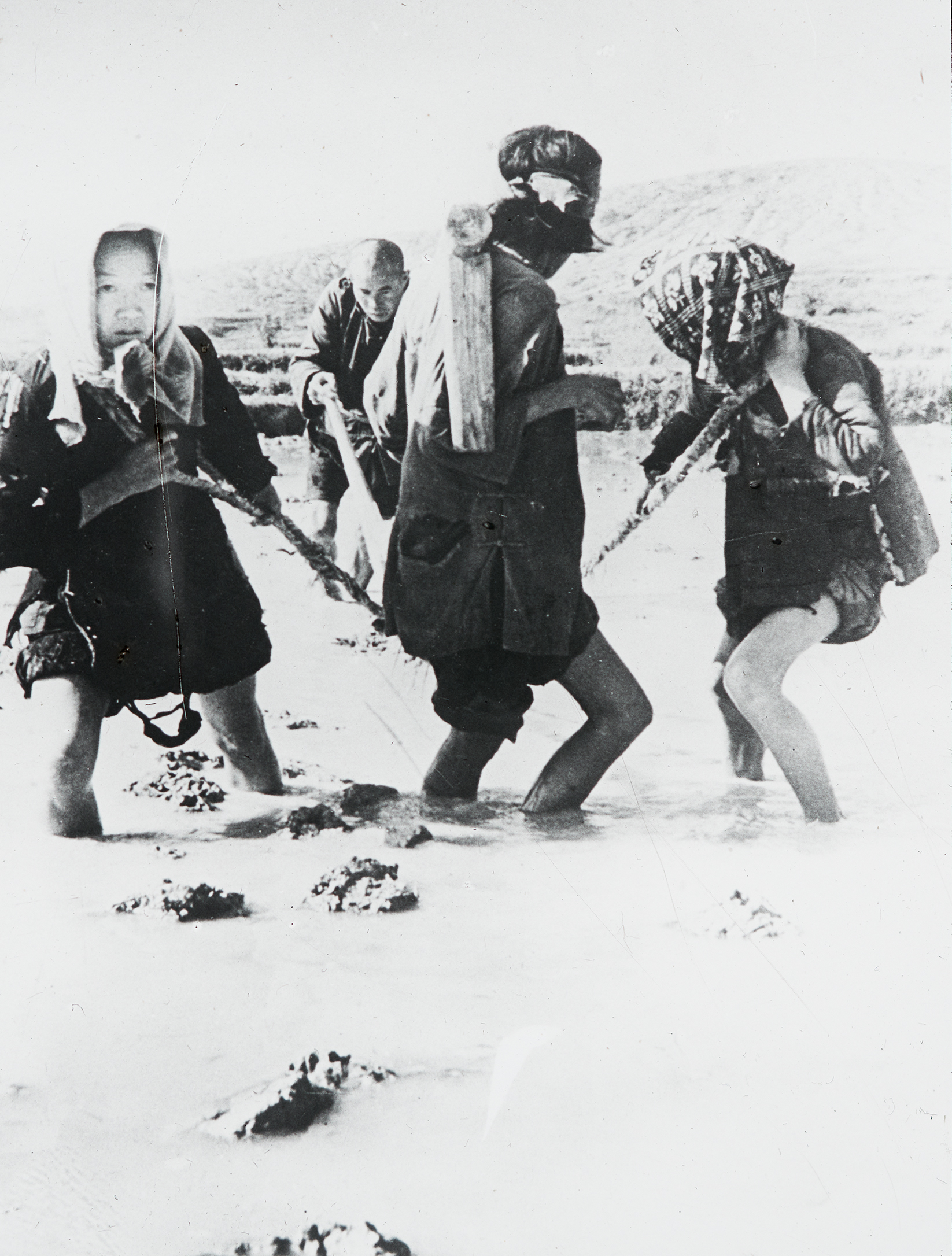Diese Bauern arbeiten auf einer Reisfarm. Zum Zeitpunkt des Bildes gab es in der chinesischen Provinz Hunan eine große Hungersnot.