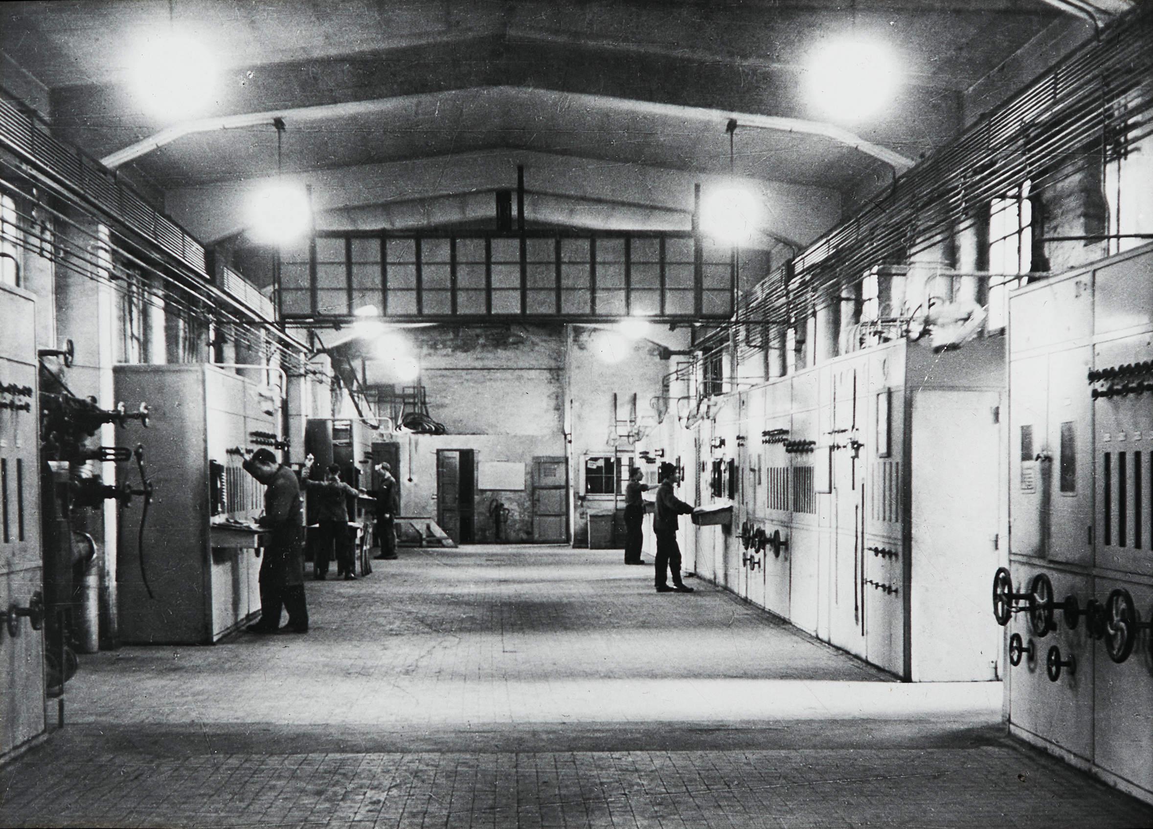 Im Innenraum einer Halle arbeiten mehrere Menschen.