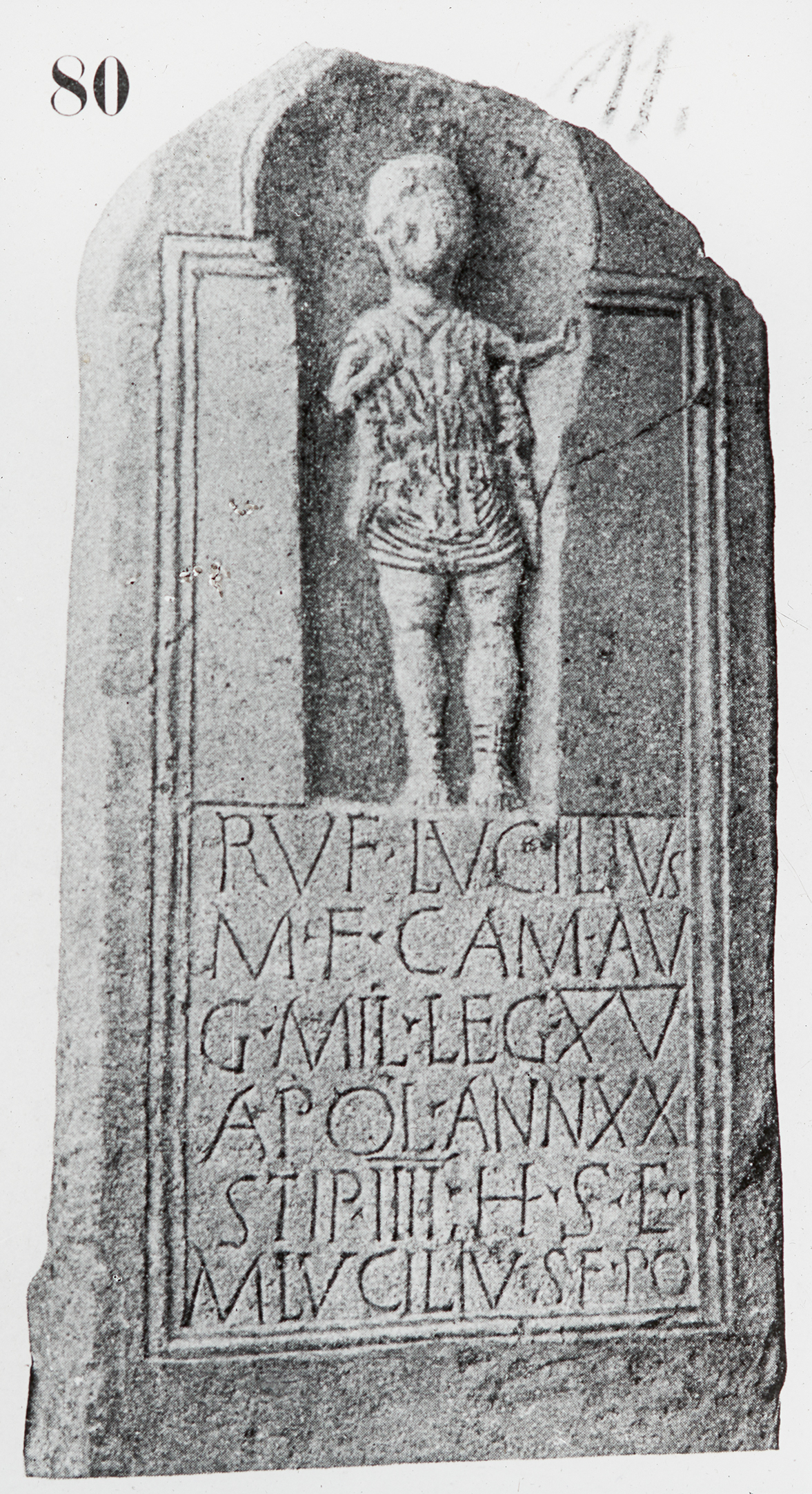 Dieser Grabstein wurde bei Grabungen in Bad Deutsch Altenburg gefunden. Rufus Lucilius war Soldat der Legio XV. Apollinaris. Diese Legion war für längere Zeit im Carnuntum stationiert.