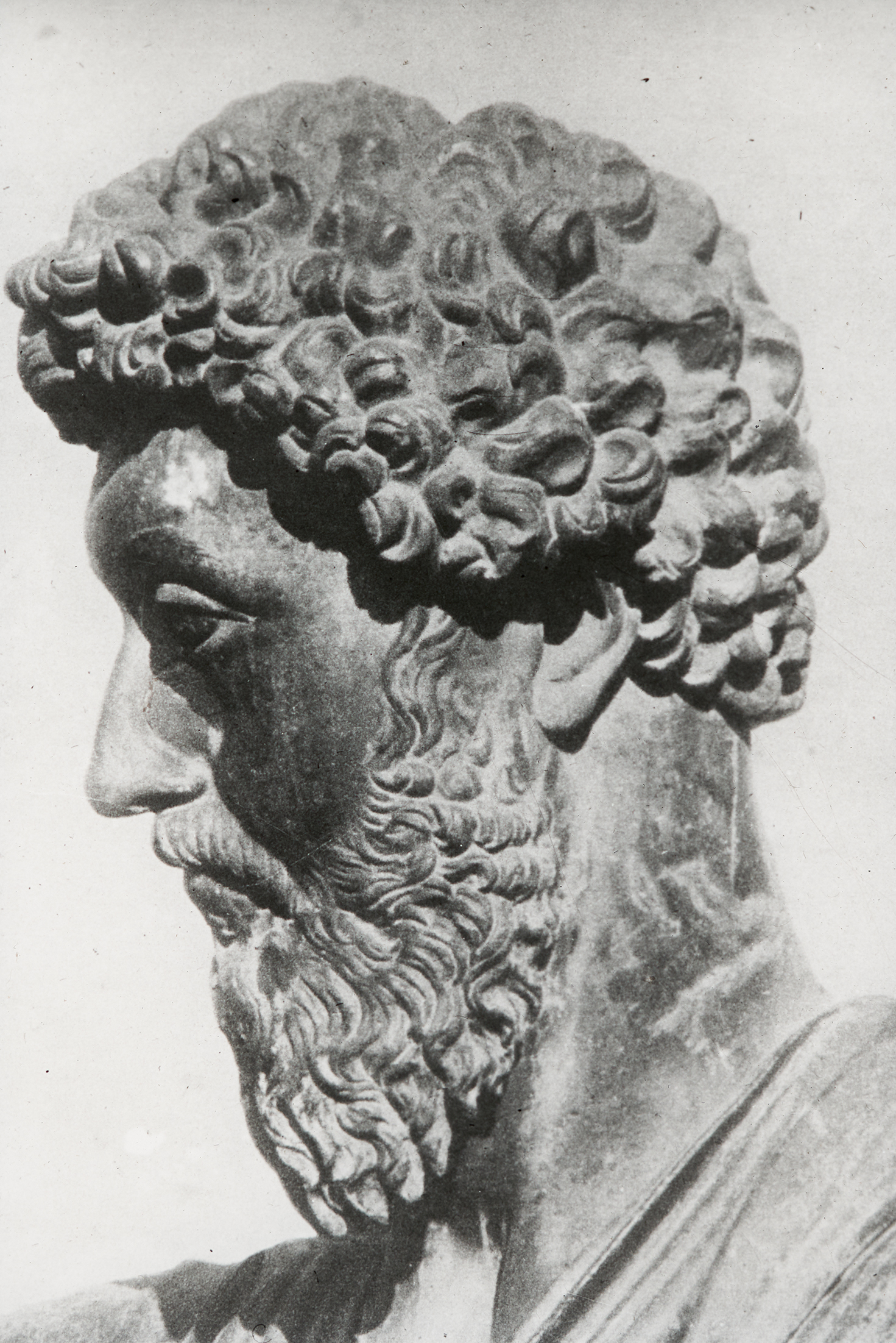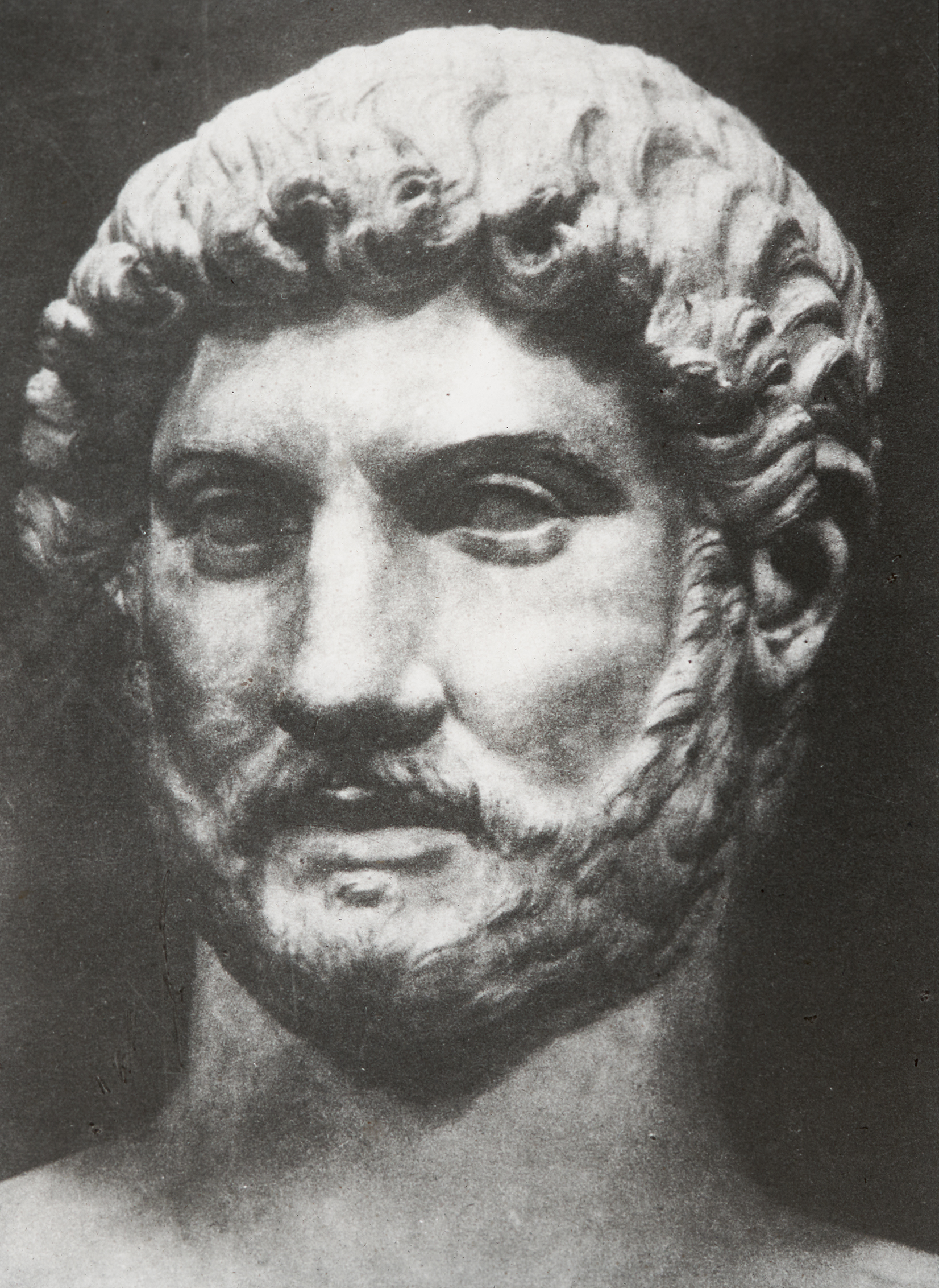 Dieser Kopf einer Statue zeigt den römischen Kaiser Hadrian. Er lebte von 76 bis 138 nach Christus und war von 117 bis zu seinem Tod Kaiser des Römischen Reichs.