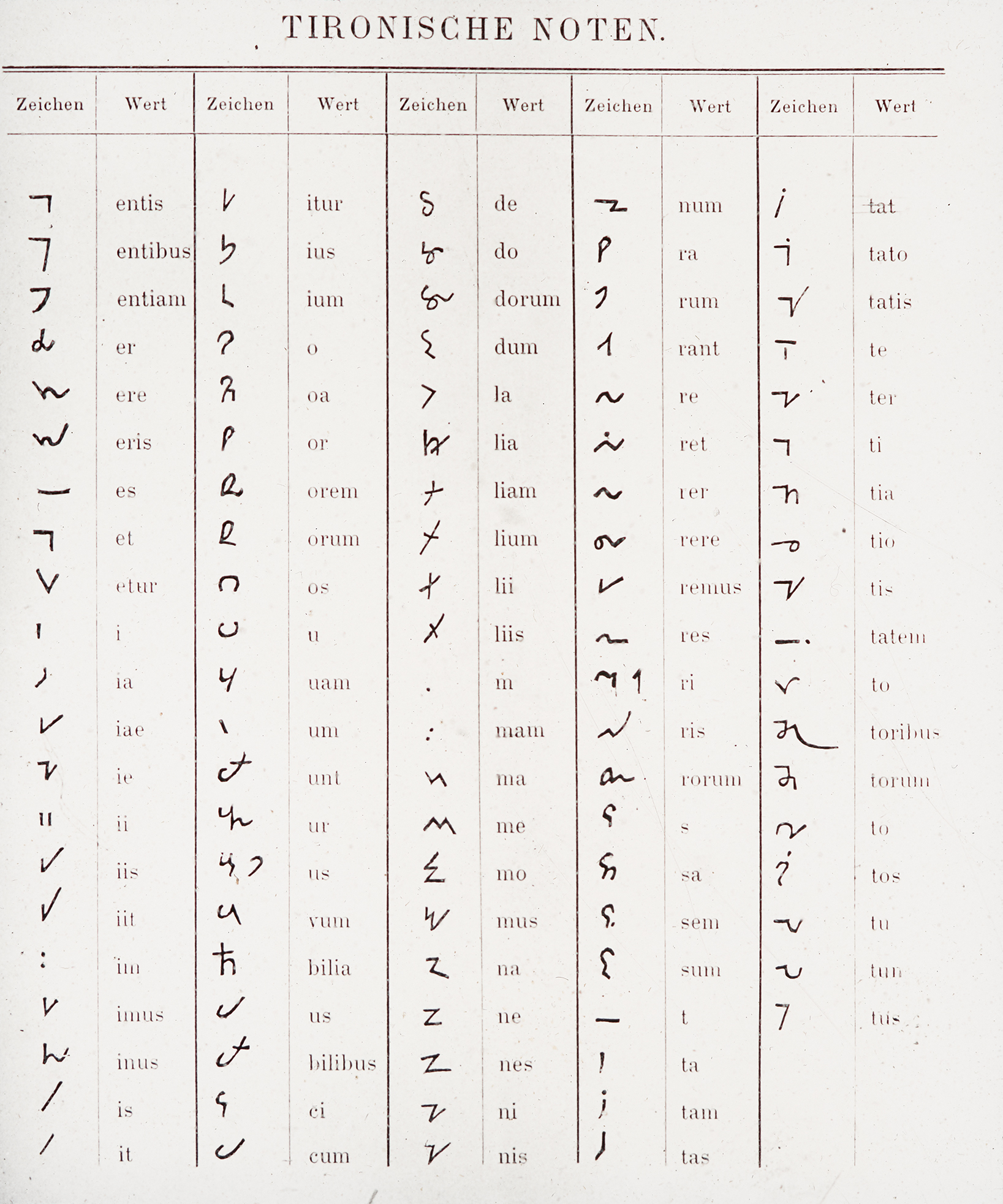 Die Tironischen Noten sind ein Schriftsystem des Sekretär von Cicero, Marcus Tillius Tiro. Bei Reden und Gerichtsverhandlungen wurde dieses Schriftsystem verwendet, um Schrift führen zu können.