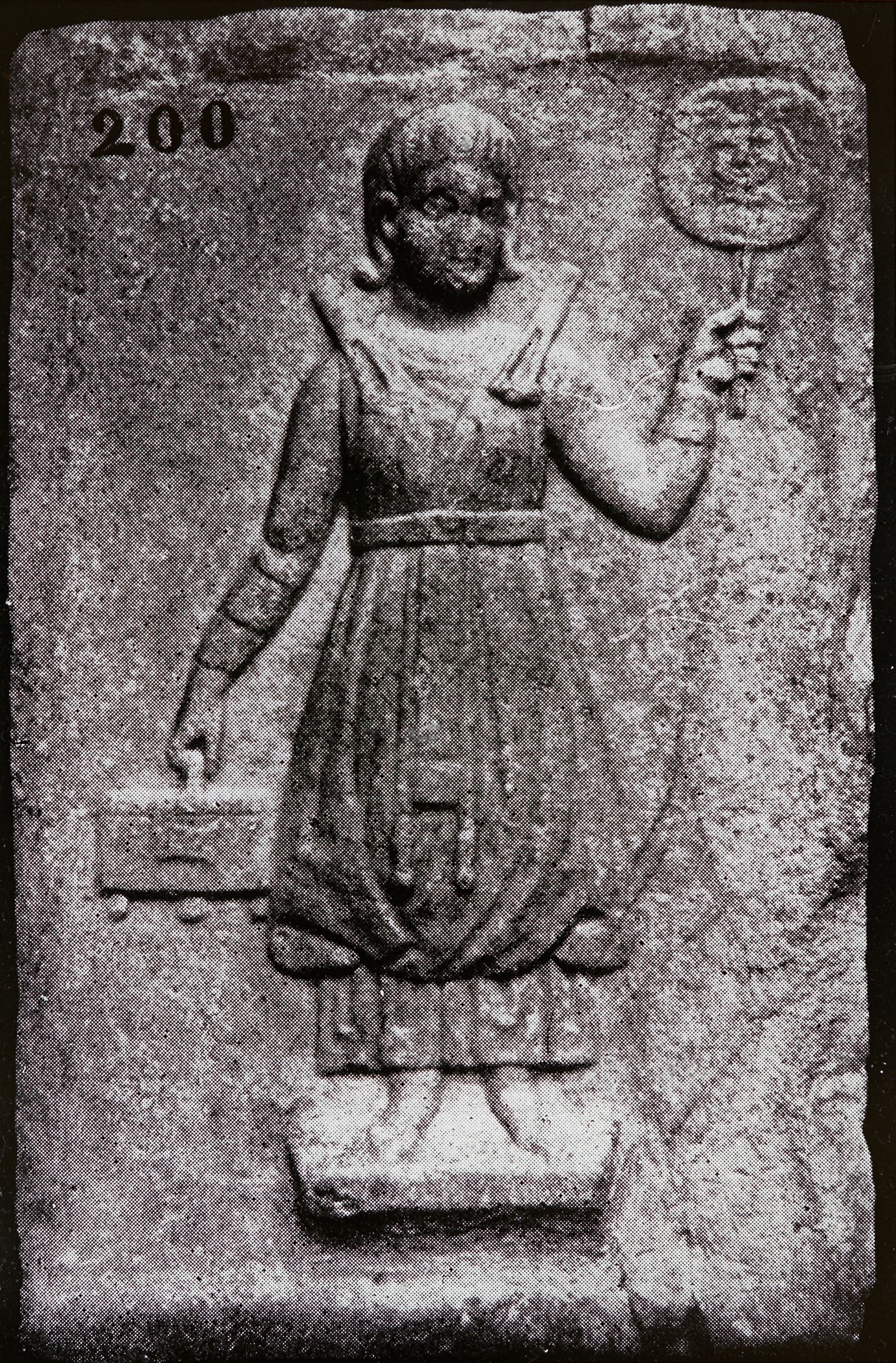 Dieses Relief zeigt eine Frau in Norischer Mädchentracht. Es wurde in Virunum in Kärnten gefunden und entstand vermutlich Mitte des 2. Jahrhunderts.