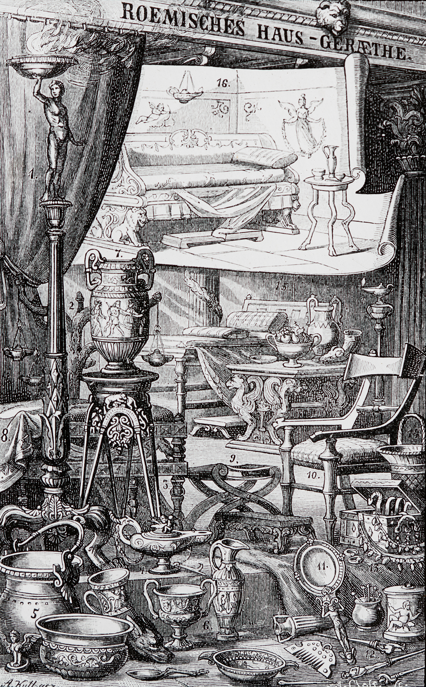 Verschiedene Einrichtungsgegenstände, die in römischen Häusern gefunden werden können.