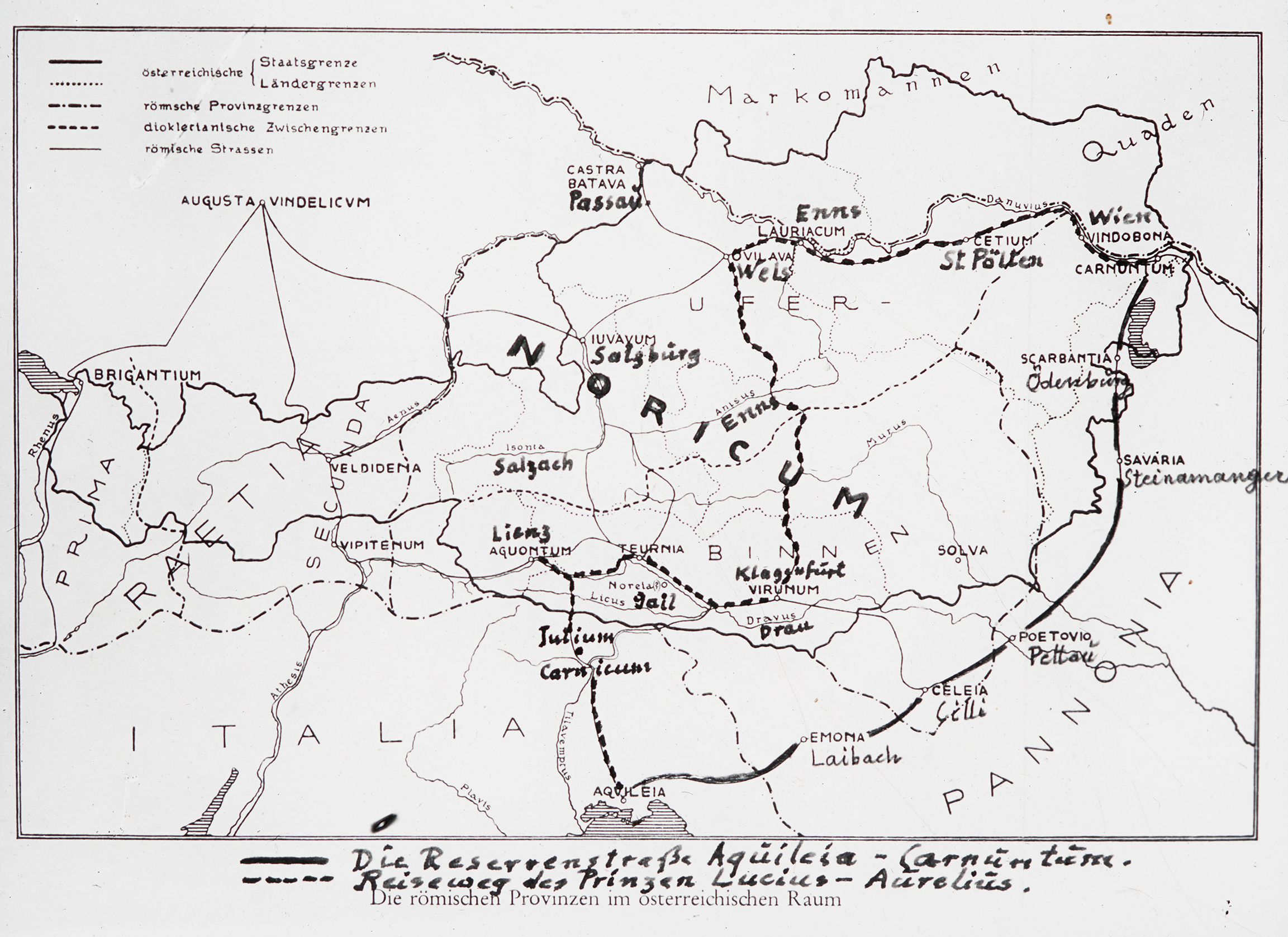 Diese Landkarte zeigt die römischen Provinzen im österreichischen Raum.