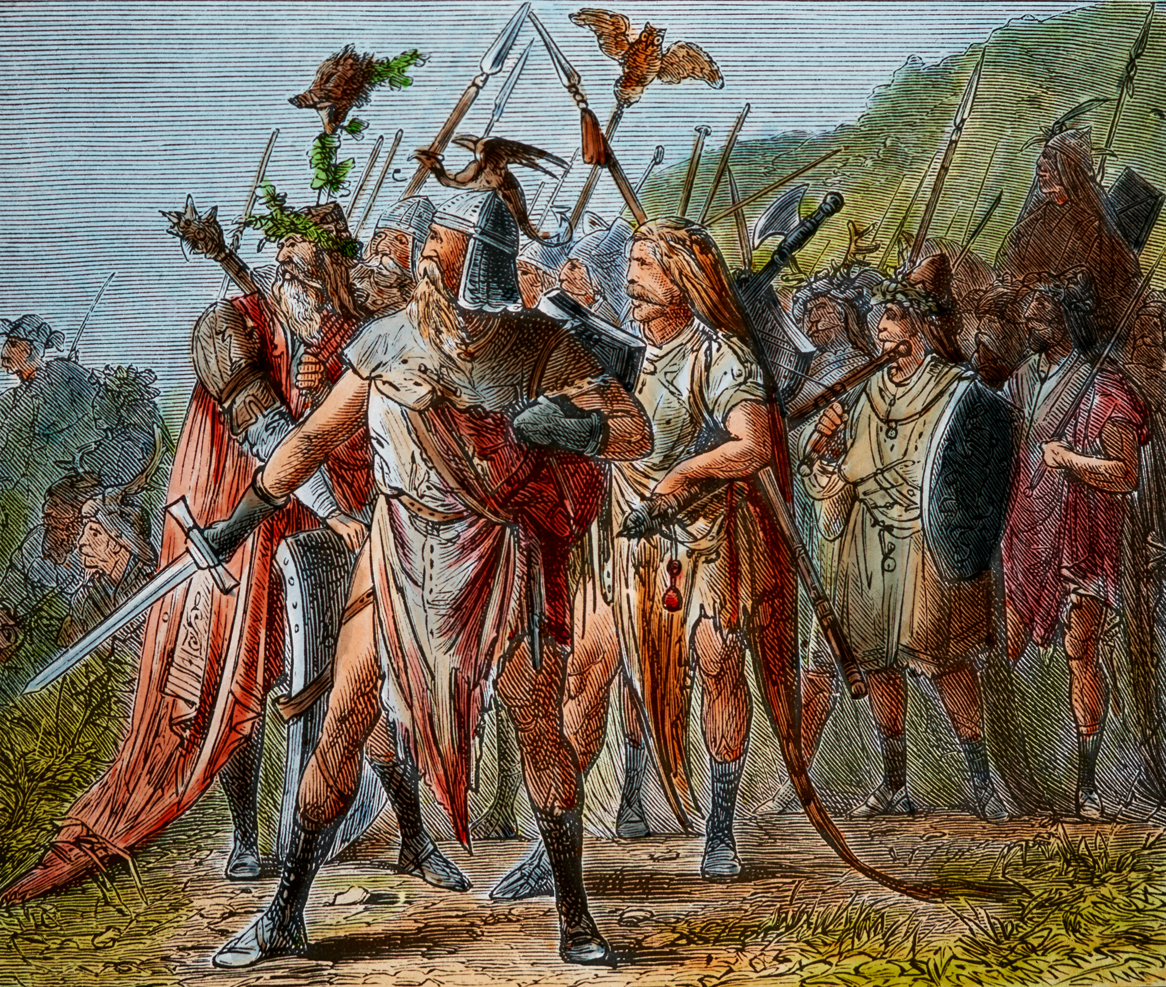 Diese Zeichnung zeigt keltische Truppen bei einem Kriegszug.