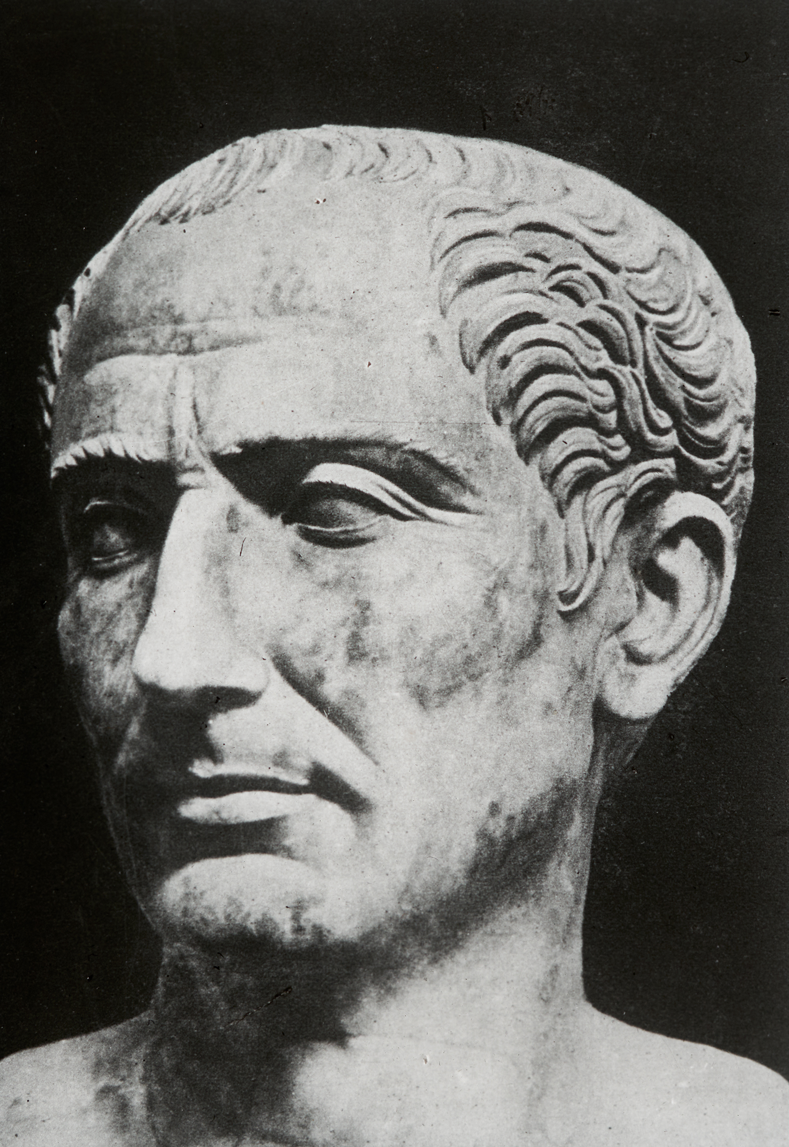 Diese Büste zeigt den Kopf von Julius Caesar. Caesar lebte von 100 bis 44 vor Christus. Er war reformierte das politische System des Römischen Reichs und konnte so alleiniger Herrscher werden, bis er bei einem Attentat ermordet wurde.