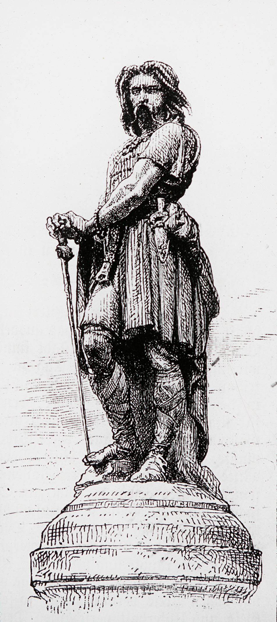 Diese Zeichnung zeigt den gallisch-keltischen Fürsten Vercingetorix. Er lebte von 82 bis 46 vor Christus.
