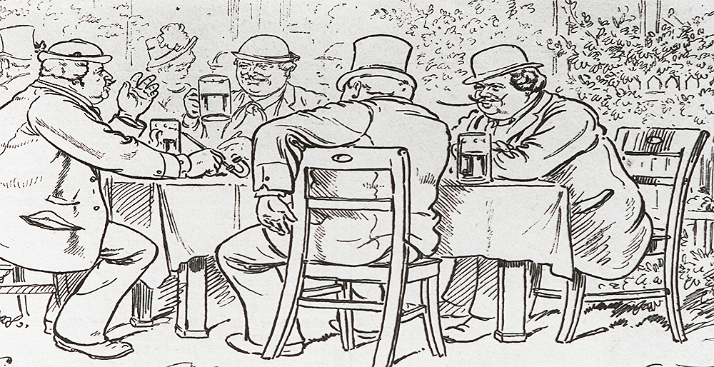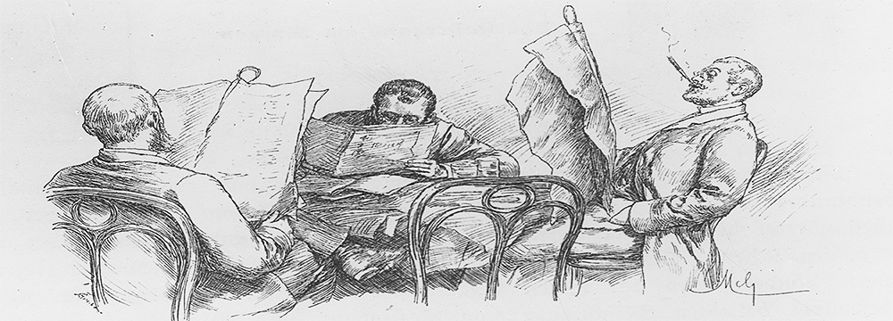 Karikaturen aus verschiedenen Serien, Tageszeitschriften und anderen Publikationen ("Wiener Szenen und Volksbeschäftigungen", "Wien - wie es weint und lacht", "Wiener Typen","Costüme und Scenen von Wien", ).
