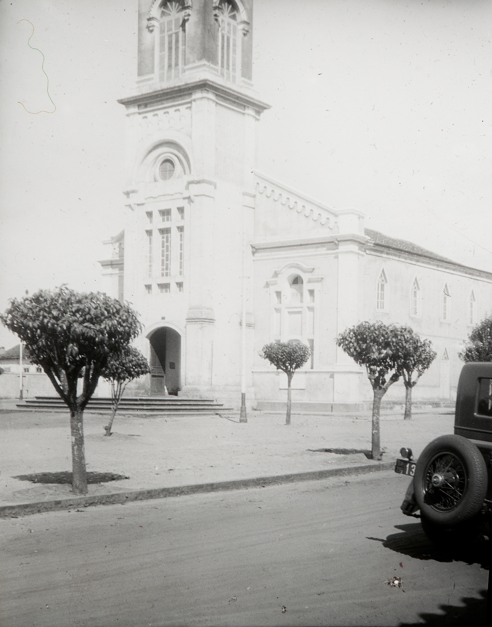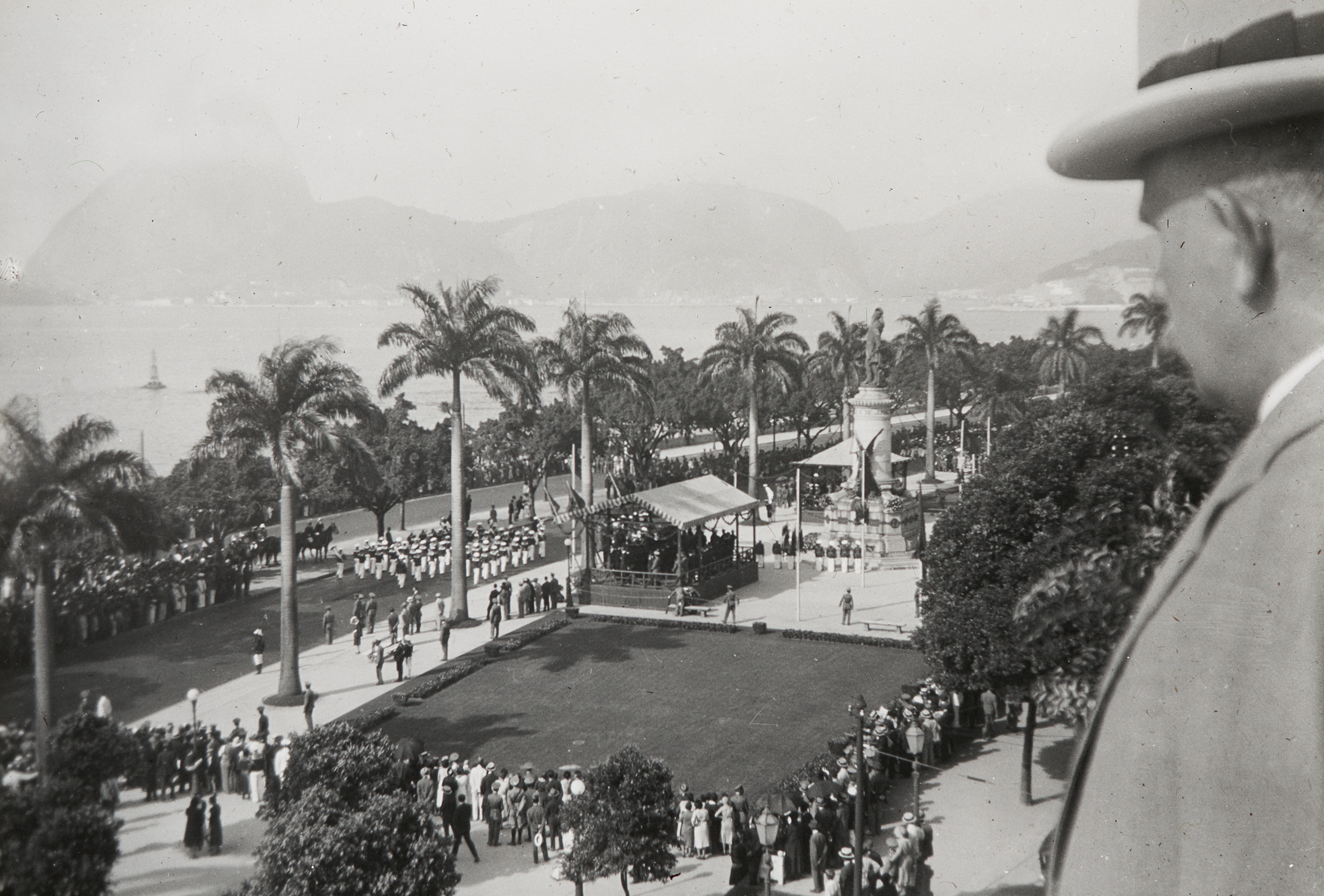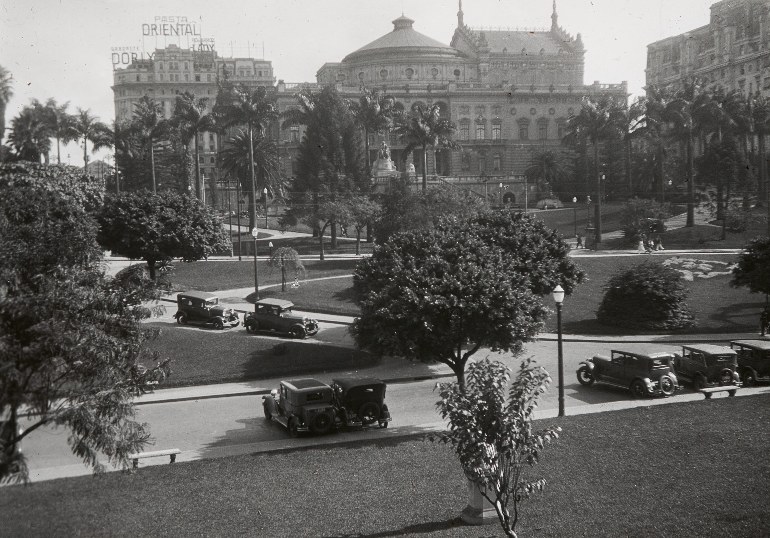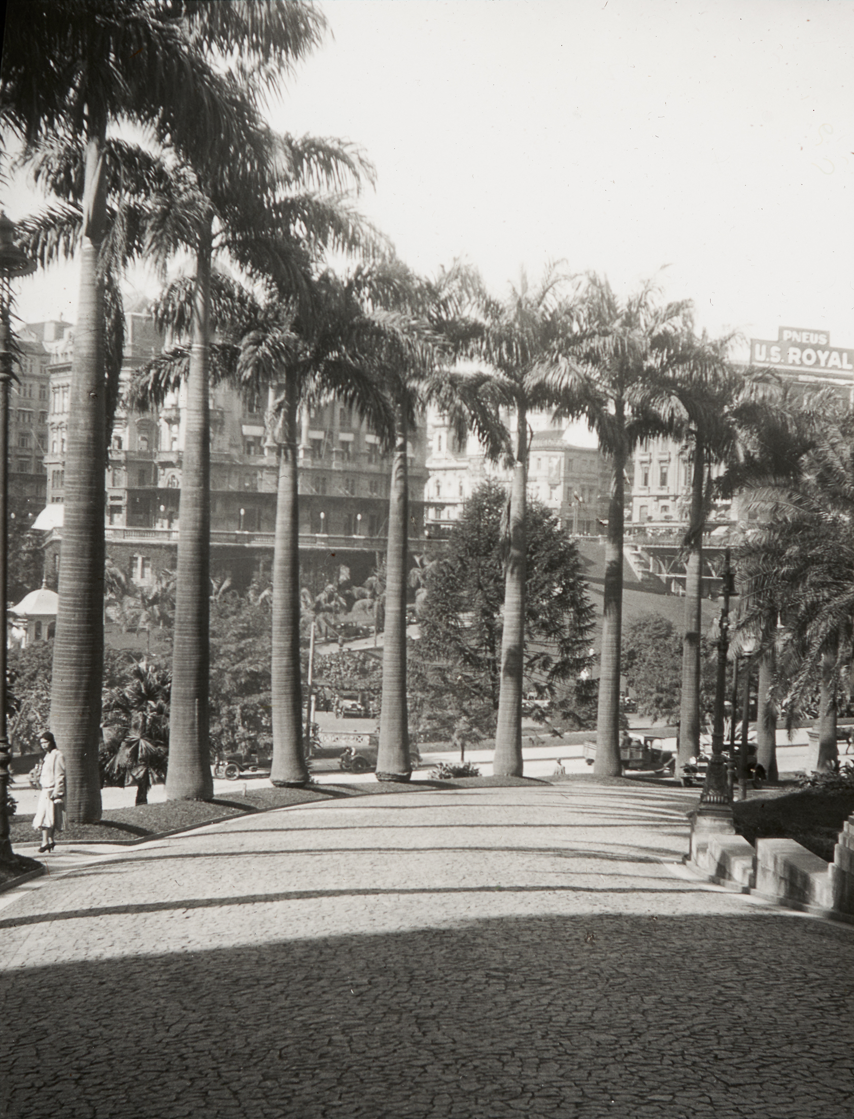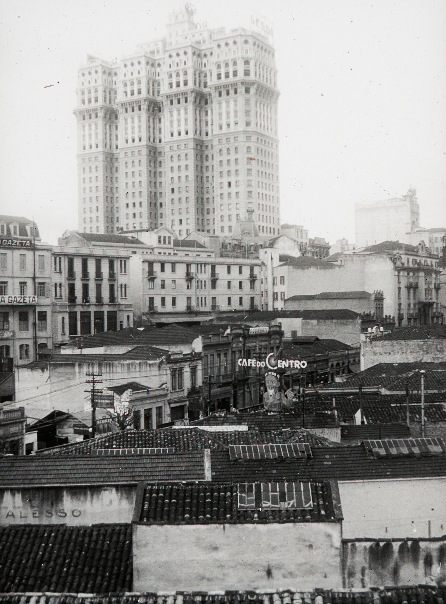 Im Hintergrund erkennt man ein hohes Gebäude, das Martinelli-Gebäude. Es war der erste Wolkenkratzer Brasiliens und befindet sich mitten in São Paulo. 1929 wurde das Gebäude mit einer Höhe von 105 Metern fertiggestellt.