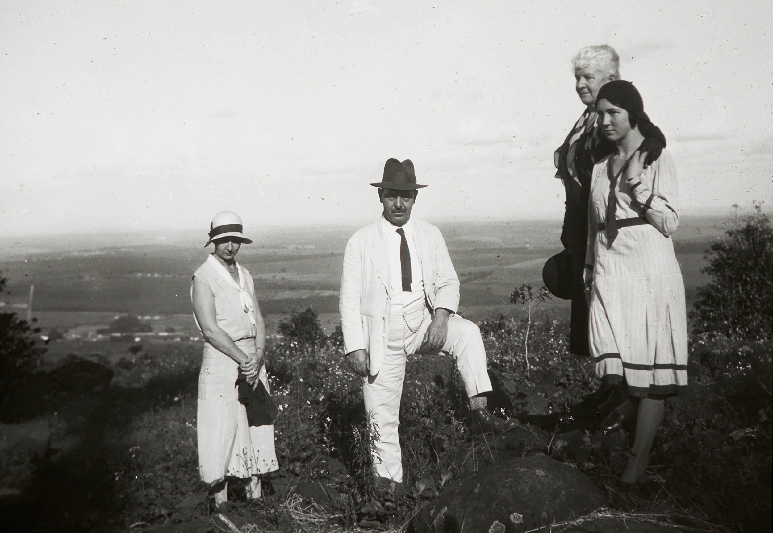 Vier Menschen, die auf einer Anhöhe fotografiert wurden.