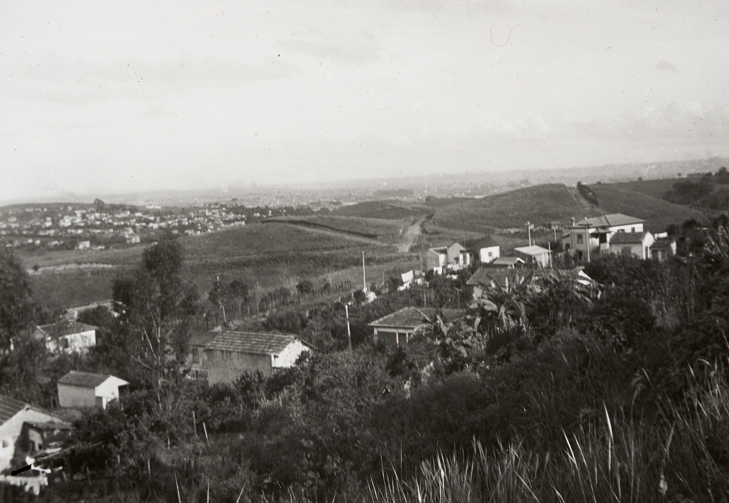 Der Ausblick über eine brasilianische Stadt. Die Häuser in der Nähe stehen, im Vergleich zum Rest der Stadt, etwas erhöht auf einem Hang.